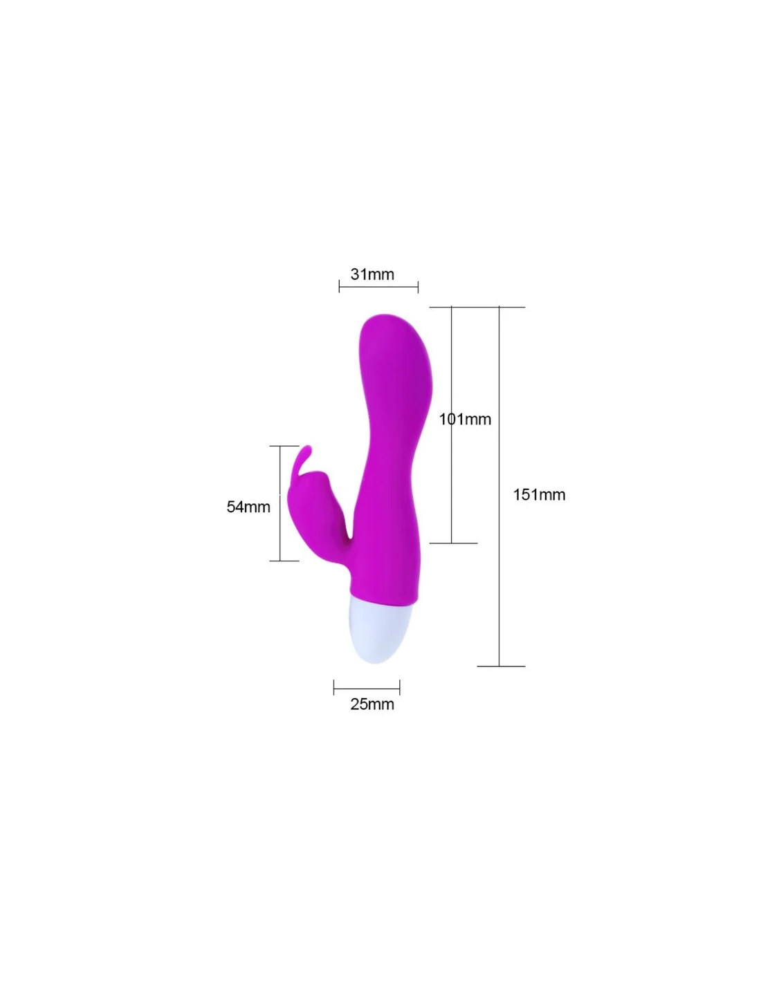 Tiene forma de un vibrador clásico con rabbit para la estimulación extra de clítoris. También cuenta con 30 intensos modos de vibración y patrones de pulsación para una perfecta estimulación interna y externa.
