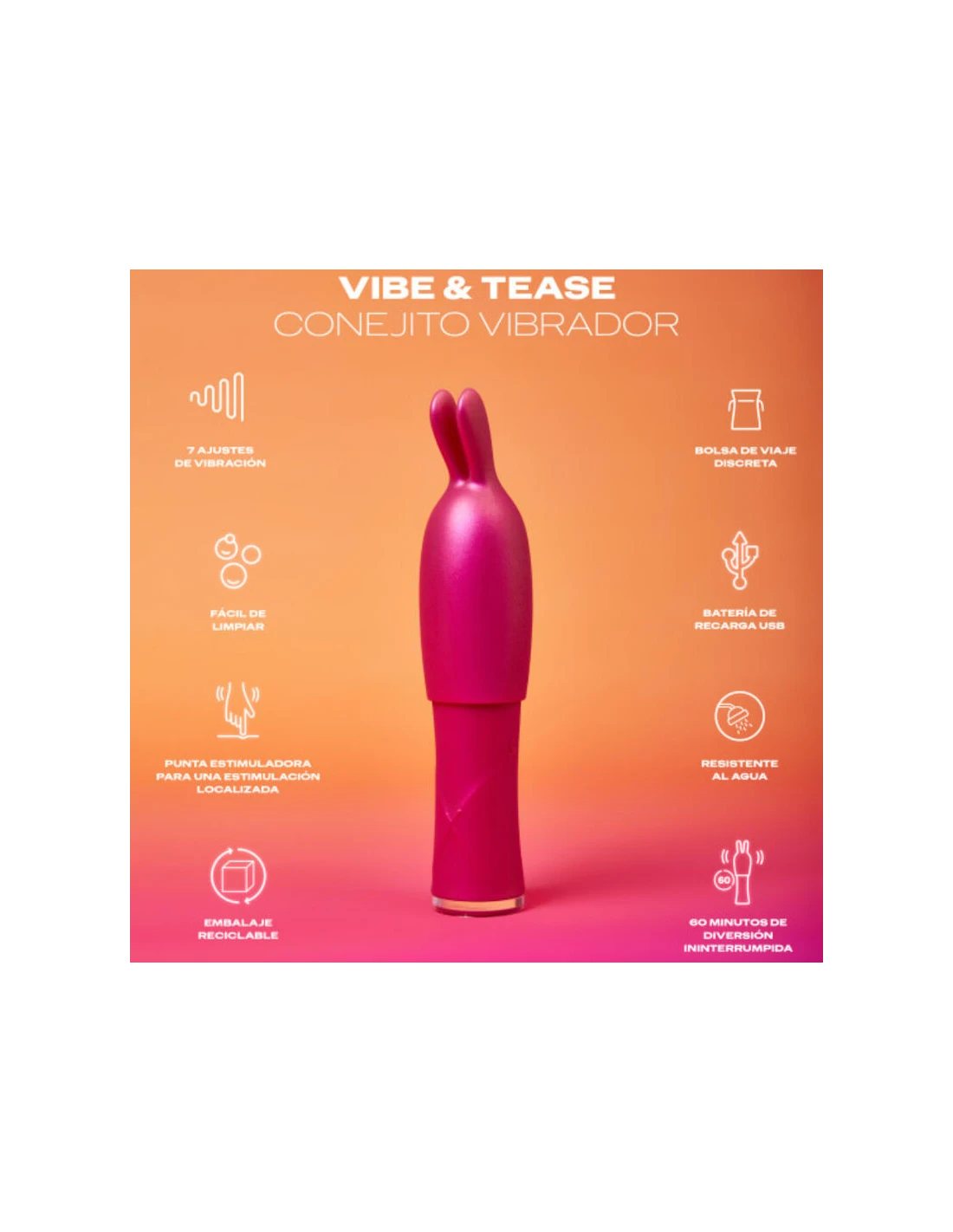 Surca las olas del placer con Vibe & Tease, el Conejito Vibrador multivelocidad de Durex. Mezcla y combina: ¡Utiliza el vibrador solo o coloca la punta estimuladora para experimentar una estimulación especifica diferente!
