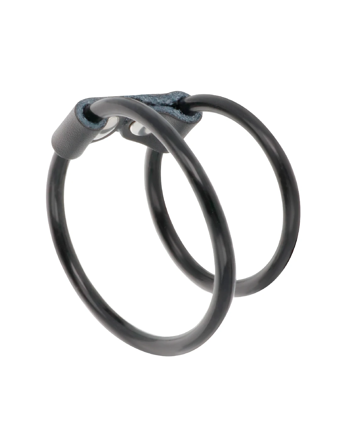 Anillo doble para el pene fabricado en leather y rubber de alta calidad, que permite retardar la eyaculación, mantener tu pene erecto mucho más tiempo y alargar el tiempo de las relaciones sexuales.