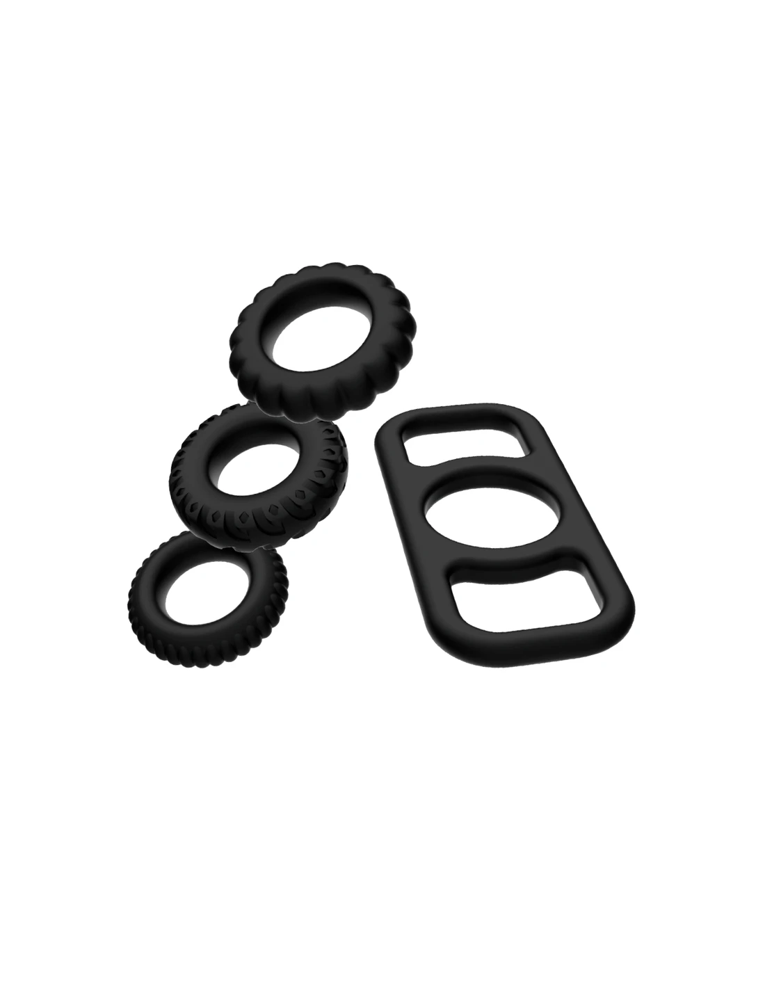 Con este set de anillos de suave silicona tienes todo lo que necesitas para vivir una experiencia sexual alucinante. Elige entre sus cuatro tamaños y formas o combínalos como quieras pues gracias a su flexibilidad y materiales bodysafe y sin ftalatos y disfruta.