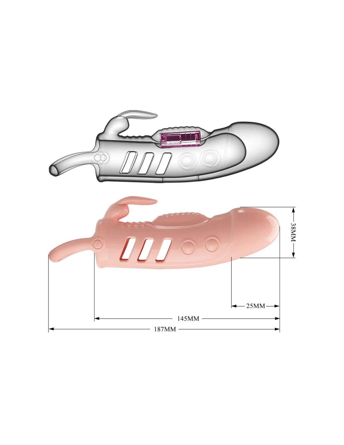 - Funcionamiento: funda de pene con vibración