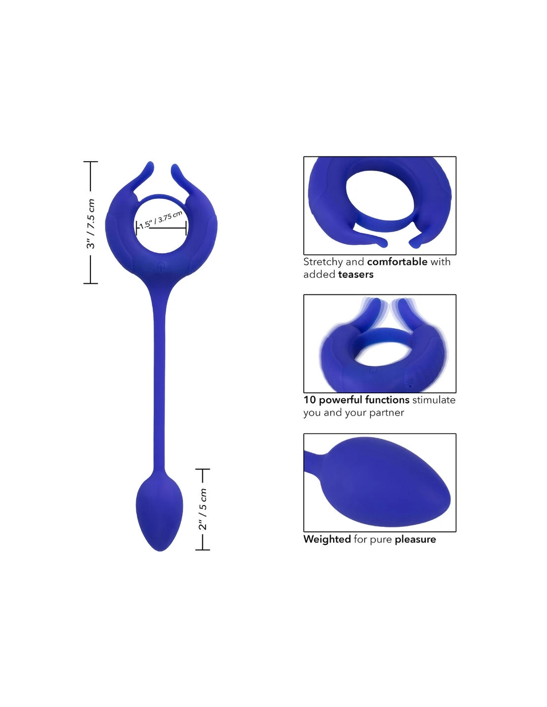 El lujoso anillo para el pene se combina con un peso de huevo sin costuras para emocionar con cada movimiento y tirón. Disfrute de una sensacional estimulación oscilante o sea más juguetón con la versátil función de sonda anal. Alcanza el siguiente nivel de placer con 10 funciones de vibración y un adelanto hecho para dejar a tu dama en un estado de felicidad orgásmica.