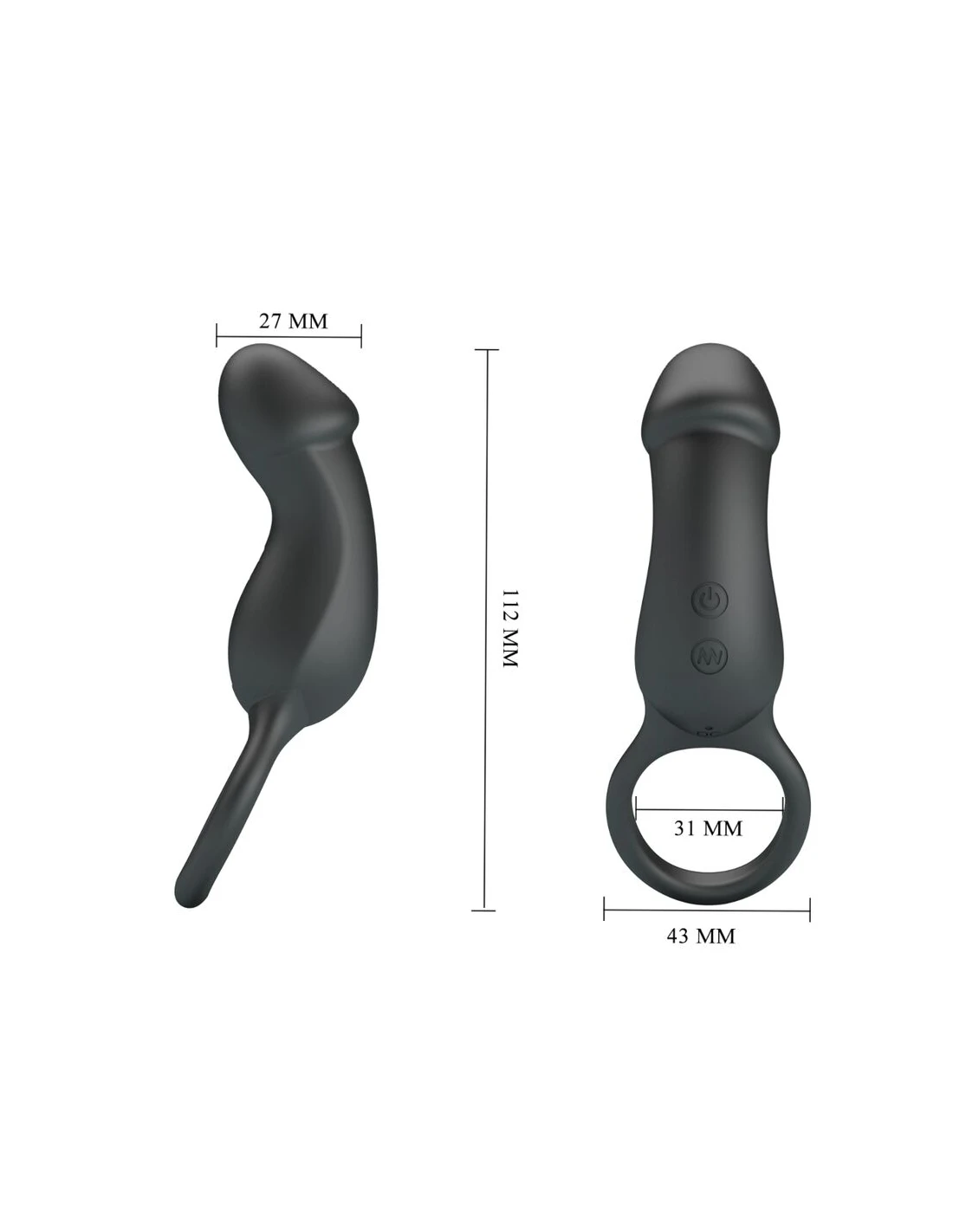 PRETTY LOVE - TRAE ANILLO VIBRADOR CON ESTIMULADOR NEGRO
