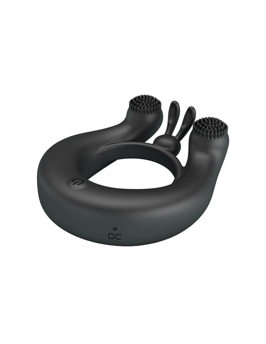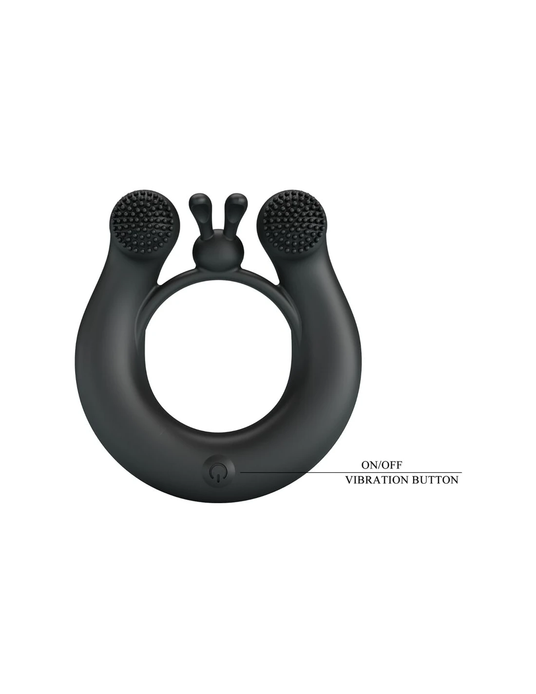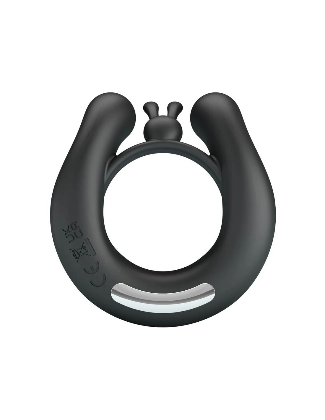 El anillo de silicona se ajusta perfectamente alrededor del eje para atrapar el flujo sanguíneo y mantener al usuario más duro durante más tiempo, al mismo tiempo que retrasa e intensifica su clímax para dar como resultado un final explosivo. En el interior, a ambos lados del anillo para el pene, dos motores impulsan el anillo con 12 modos de vibración tentadores, que hacen que las puntas del estimulador parpadeen y revoloteen contra los puntos más sensibles de la pareja receptora.