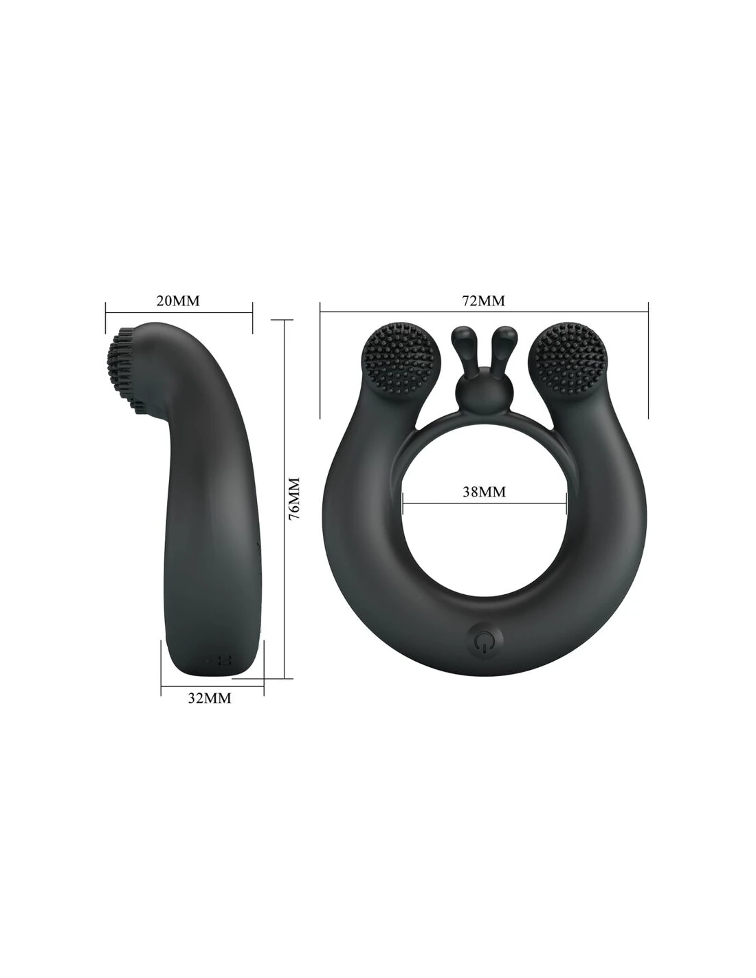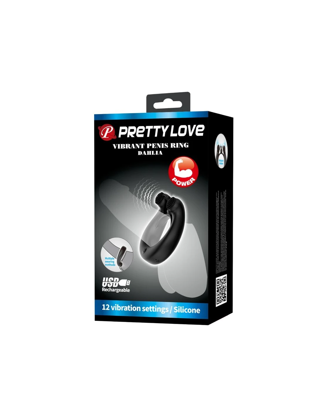 PRETTY LOVE - DAHLIA ANILLO VIBRADOR + ESTIMULADOR DE CLÍTOIS 12 VIBRACIONES NEGRO