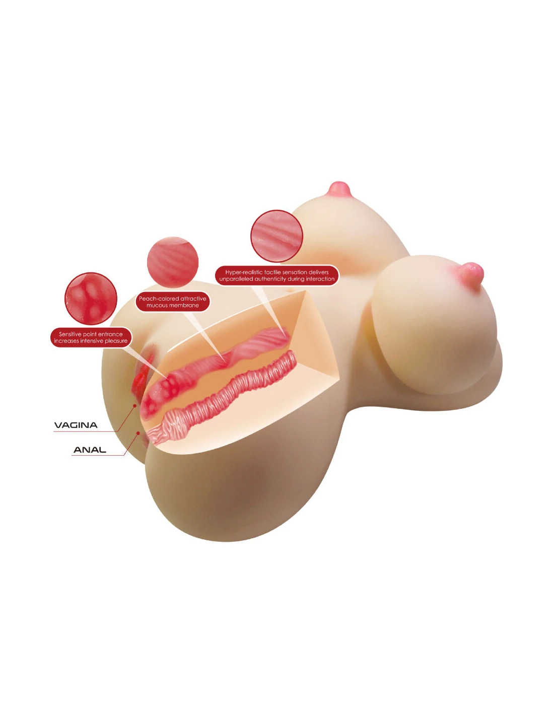 Fiona está fabricado en TPR de alta calidad, un material seguro para el cuerpo, suave al tacto y fácil de limpiar, que asegura un uso higiénico en todo momento. Gracias a la exclusiva tecnología Sort Skin, su superficie reproduce de manera sorprendente la textura de la piel humana, aportando una elasticidad natural y una sensación hiperrealista al contacto. Su diseño cuenta con dos orificios independientes (vaginal y anal), lo que amplía las posibilidades de disfrute y proporciona diferentes tipos de estimulación según las preferencias del usuario. Cada entrada está cuidadosamente esculpida para ofrecer una autenticidad fisiológica inigualable, replicando con gran realismo las sensaciones del cuerpo femenino.