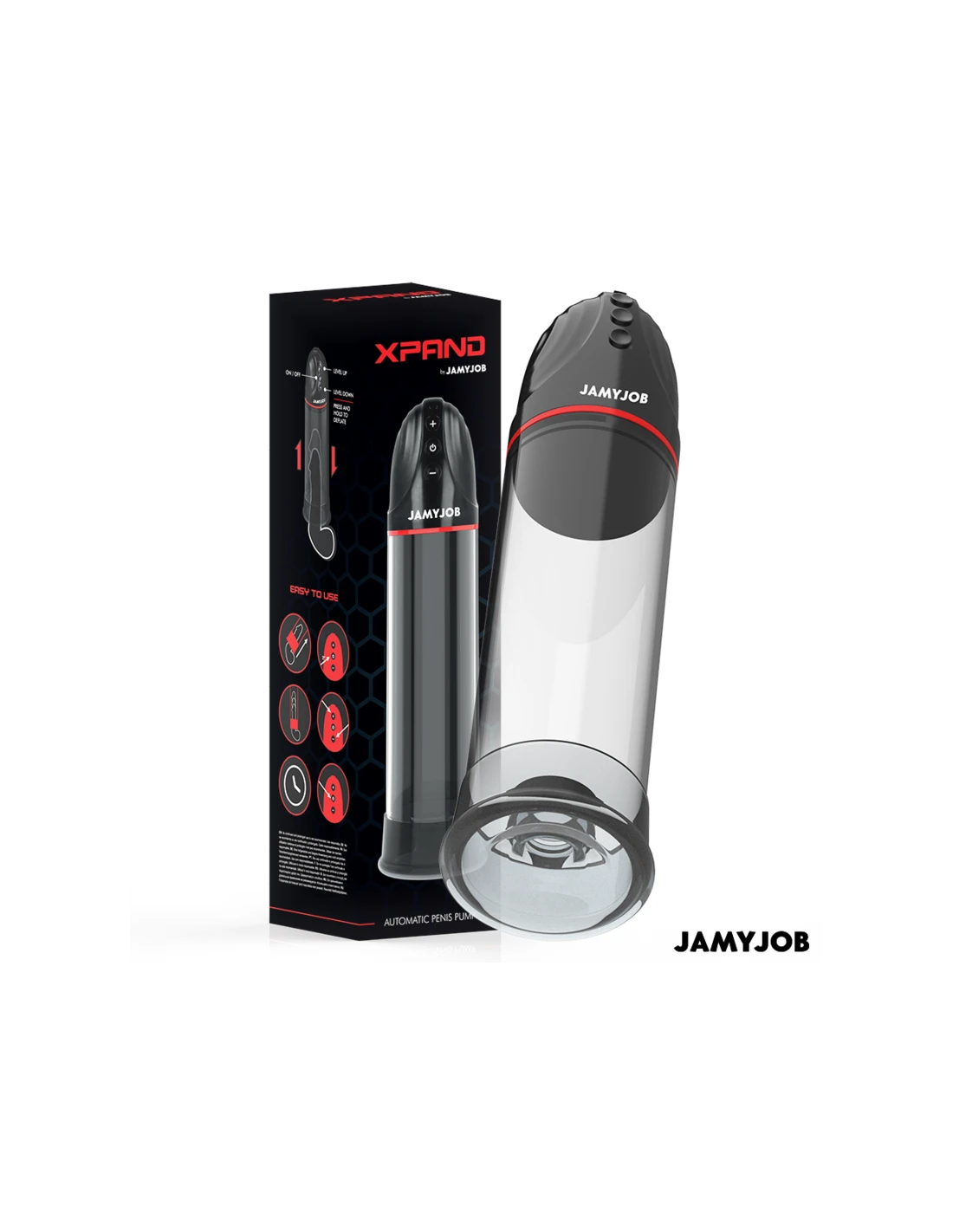 La bomba automática extensora de pene XPAND de la marca JAMYJOB es un dispositivo de alta tecnología diseñado para mejorar la experiencia masculina, tanto en términos de placer como de desarrollo. Con un diseño moderno y características avanzadas, la XPAND ofrece una manera segura y efectiva de aumentar el tamaño y mejorar el rendimiento. A continuación, se describen sus principales características: