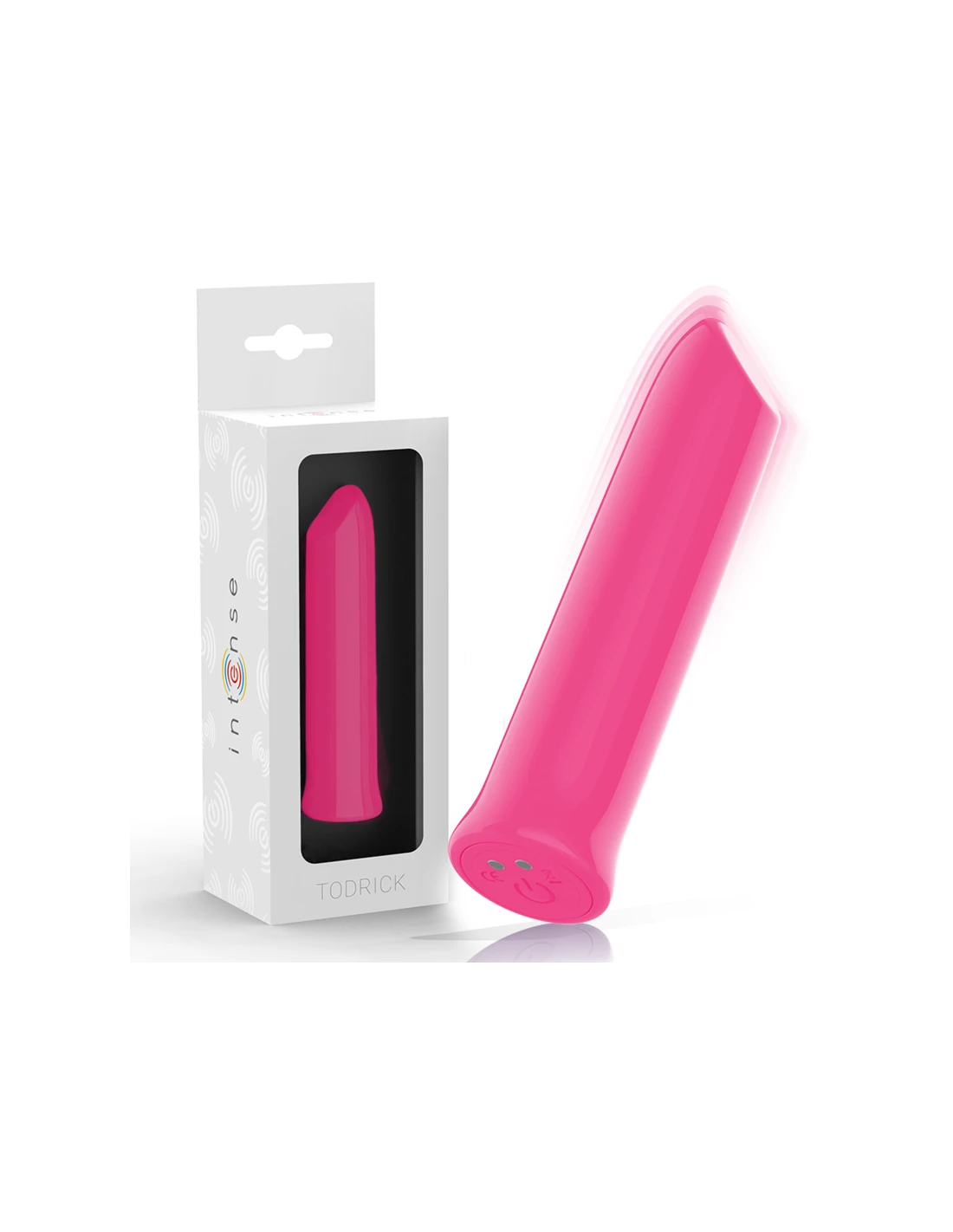La bala vibradora TODRICK de la marca INTENSE es un elegante y compacto dispositivo de estimulación en un vibrante color morado.