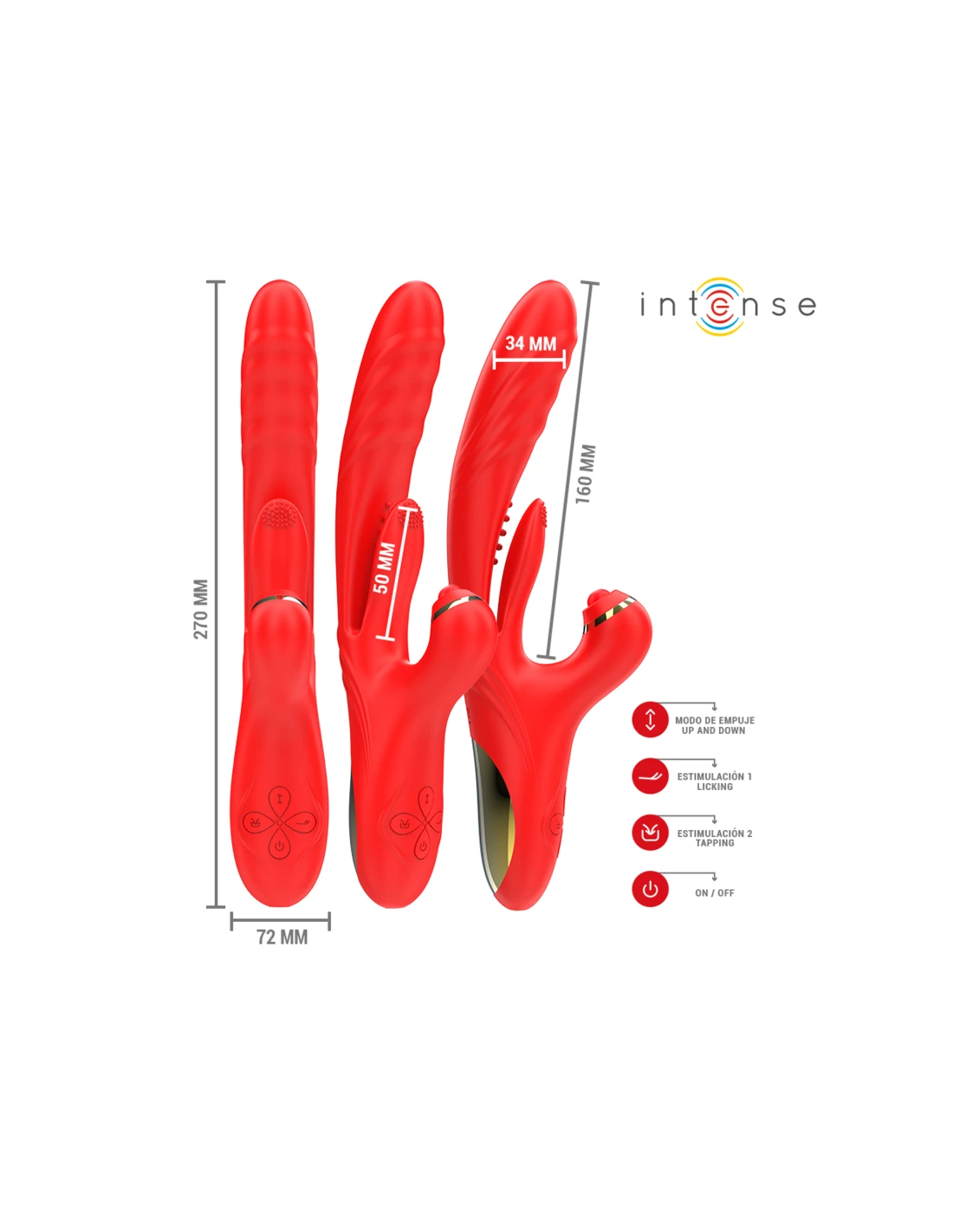 INTENSE - ROSALIA VIBRADOR MULTIFUNCIÓN 3 EN 1 ROJO