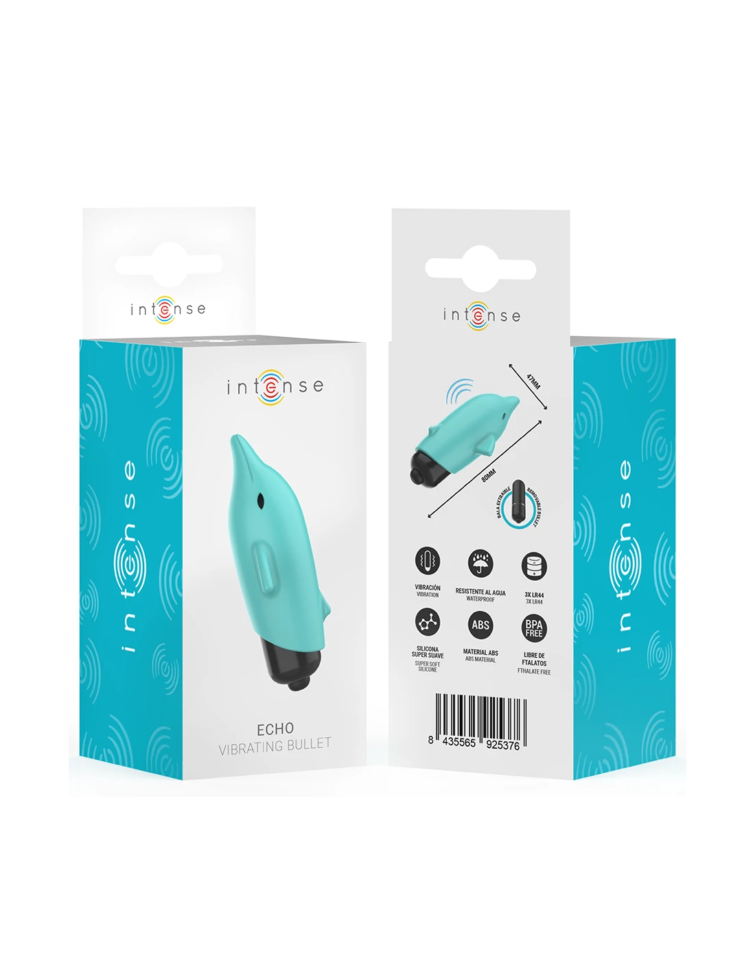 INTENSE - ECHO BALA VIBRADORA DELFÍN AZUL 8 X 4.7 CM