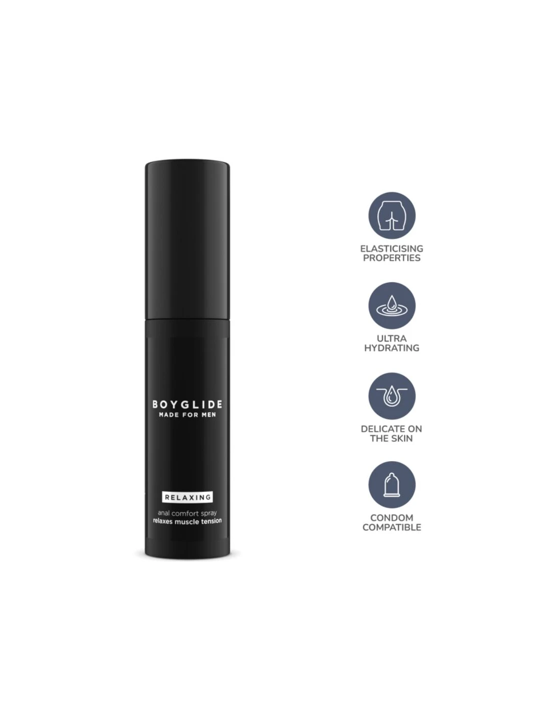 Boyglide spray relajante anal es una loción con propiedades súper hidratantes y elastizantes, relaja la tensión muscular de la parte intima, atenúa su contracción y garantiza así el máximo placer.