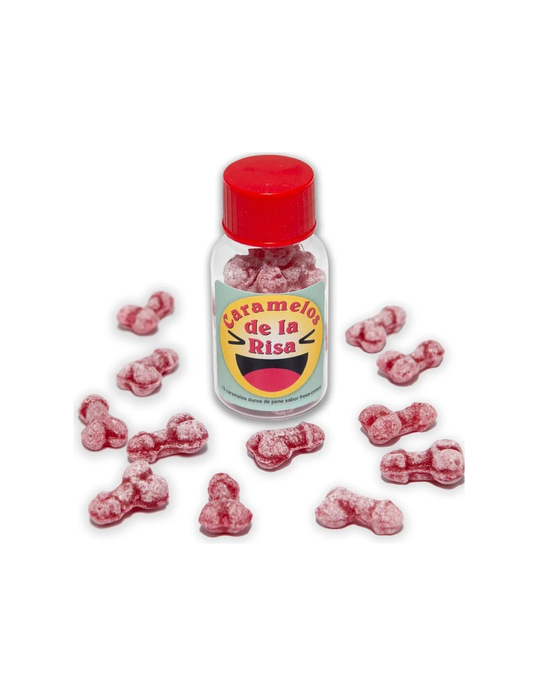 DIABLO PICANTE - 12 CARAMELOS DE LA RISA FORMA PENE FRESA/CEREZA