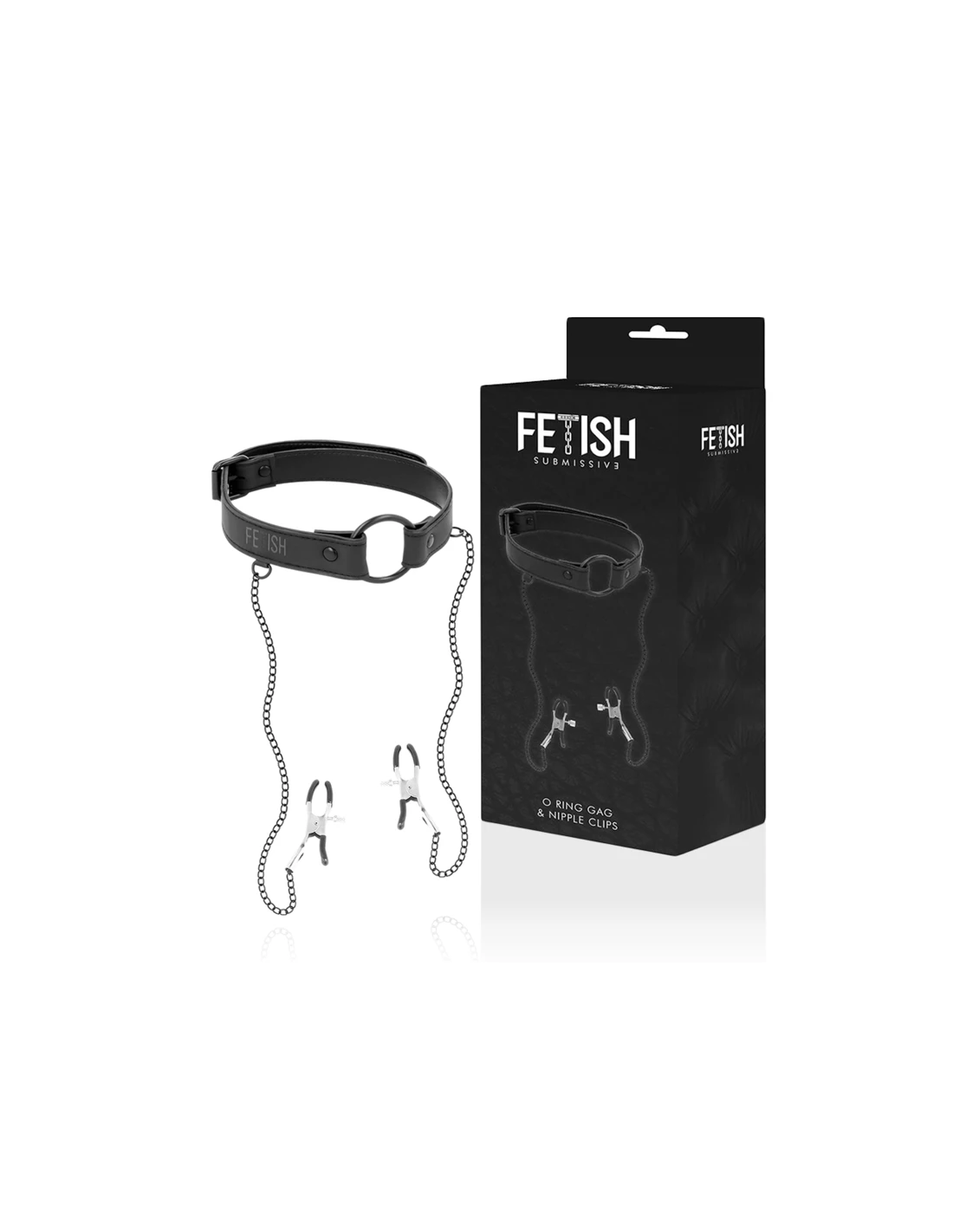 FETISH SUBMISSIVE - ANILLA MORDAZA CON PINZAS PARA PEZONES