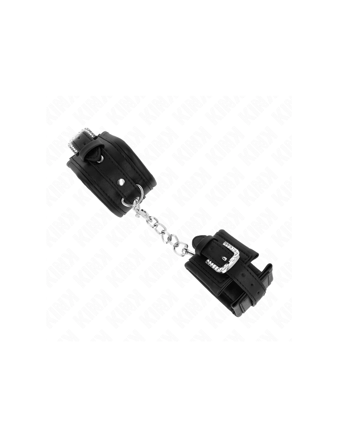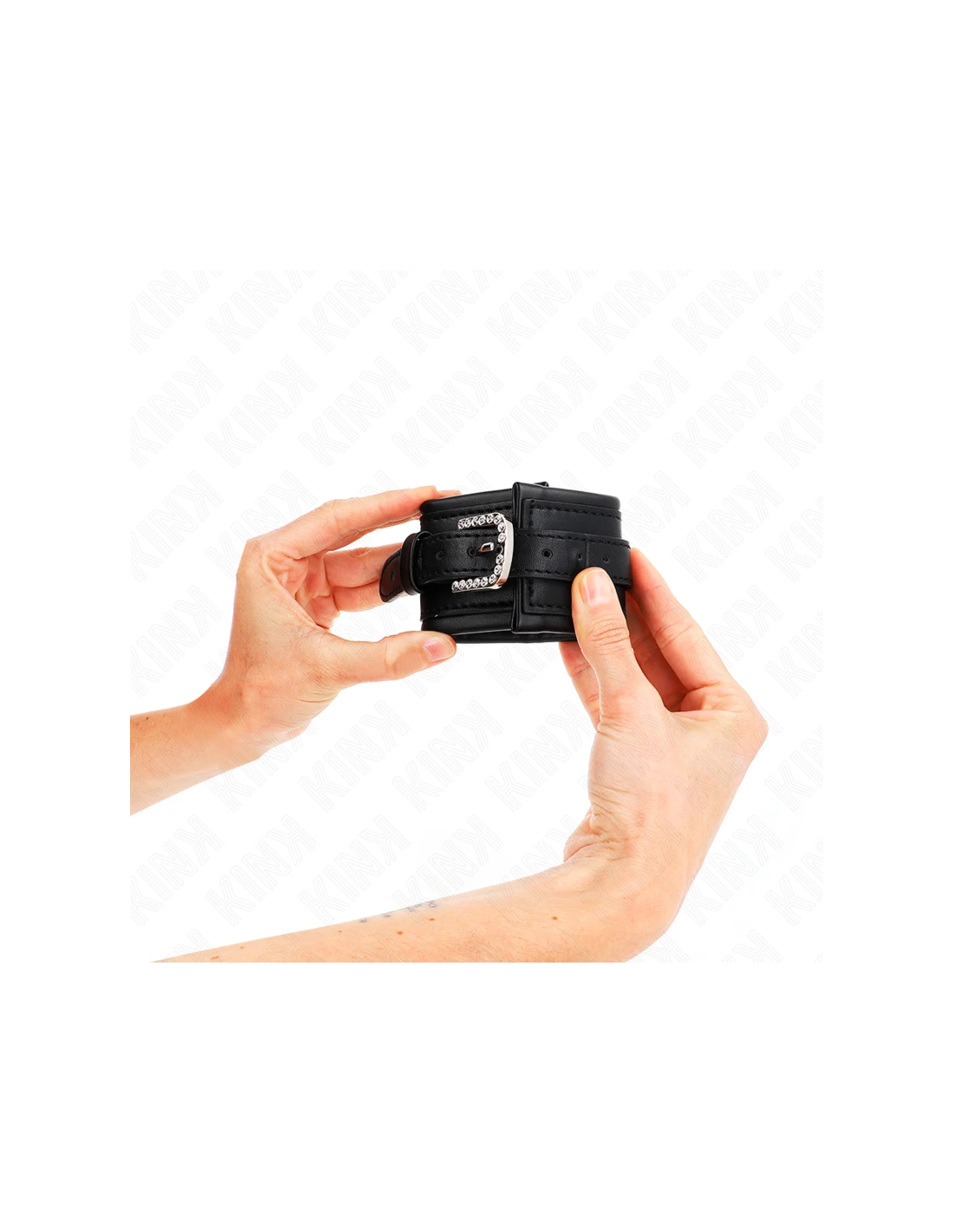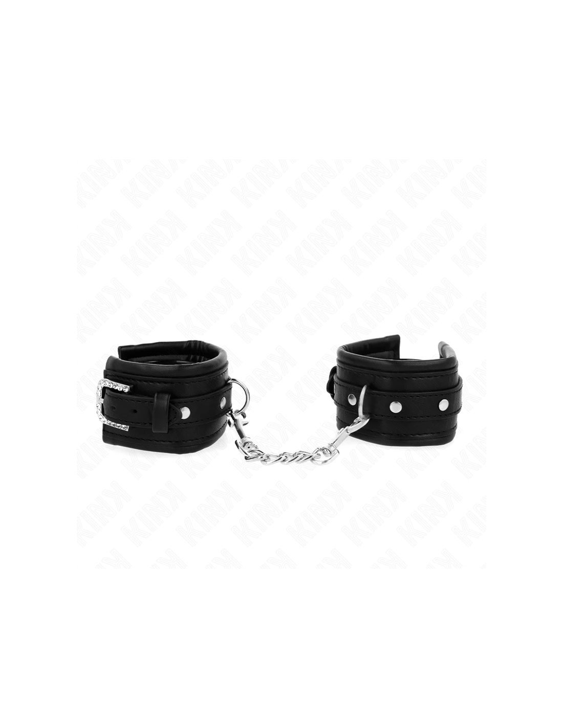 KINK - MUÑEQUERAS NEGRO CON HEBILLA DE DIAMANTES DE IMITACIÓN AJUSTABLE 25-32 CM X 5.5 CM