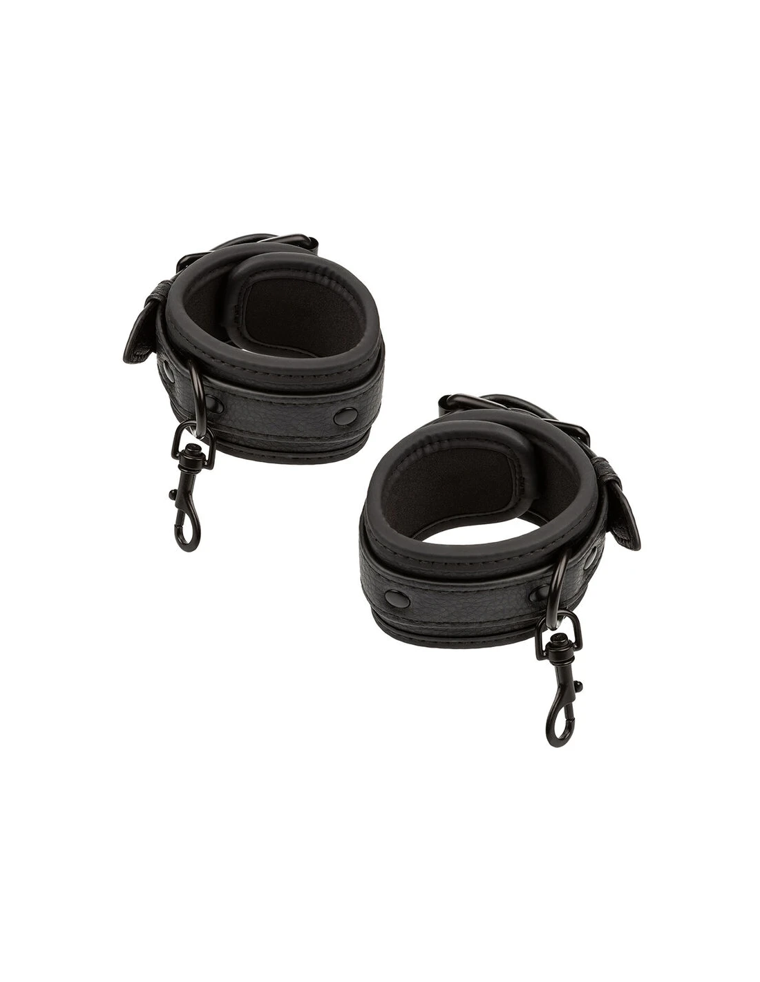 En el núcleo se encuentra el resistente conector hog tie, que permite diversas posiciones y niveles de restricción. Los cierres universales y un anillo D giratorio mejoran la destreza. Doblemente cosido para mayor durabilidad, garantiza longevidad. El acabado texturizado añade placer sensorial. Versátil, puede desmontarse para usar los puños individualmente.
