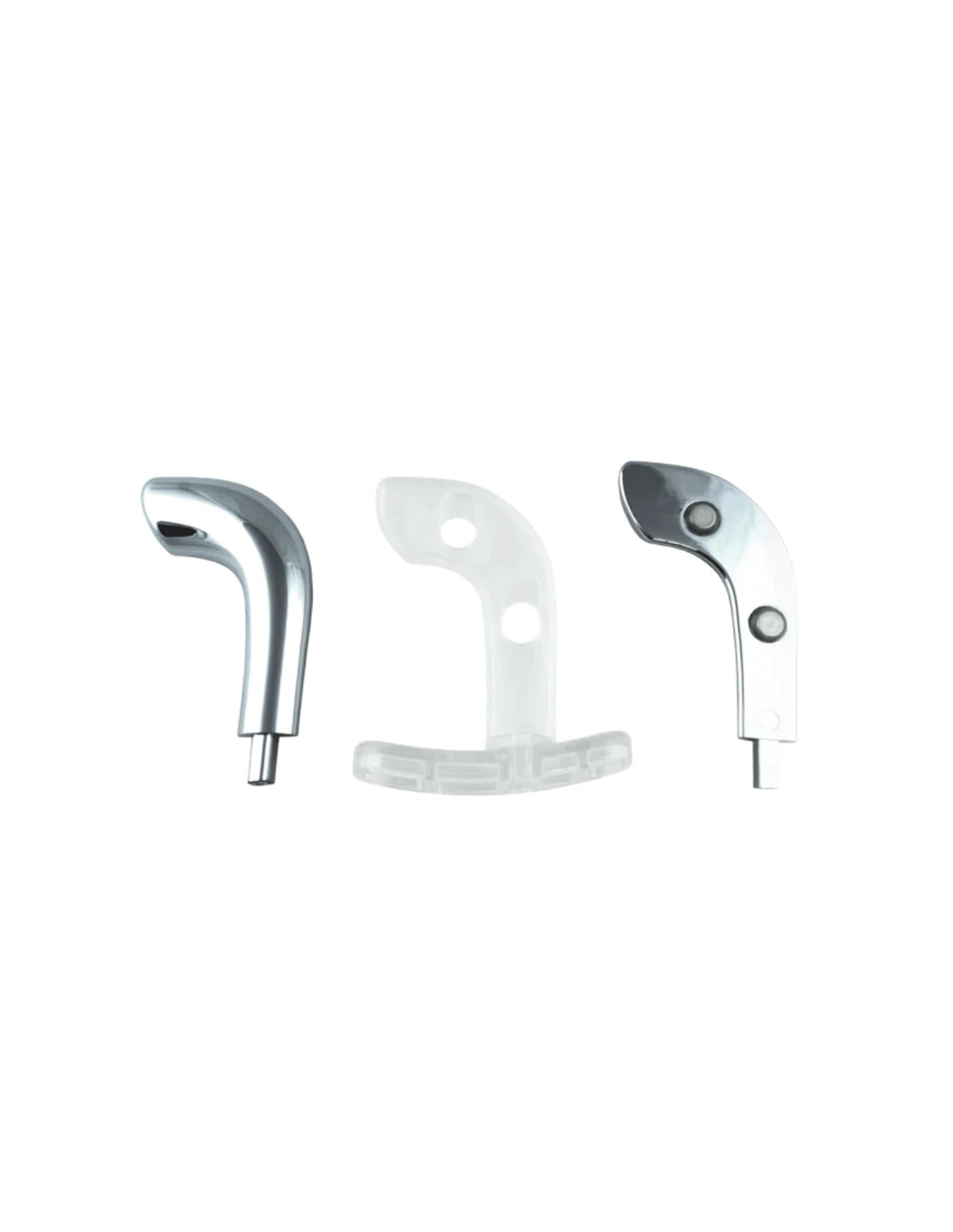 - Material: (Masajeador) metal conductor con acabado cromado, policarbonato transparente, mecanismo de montaje magnético