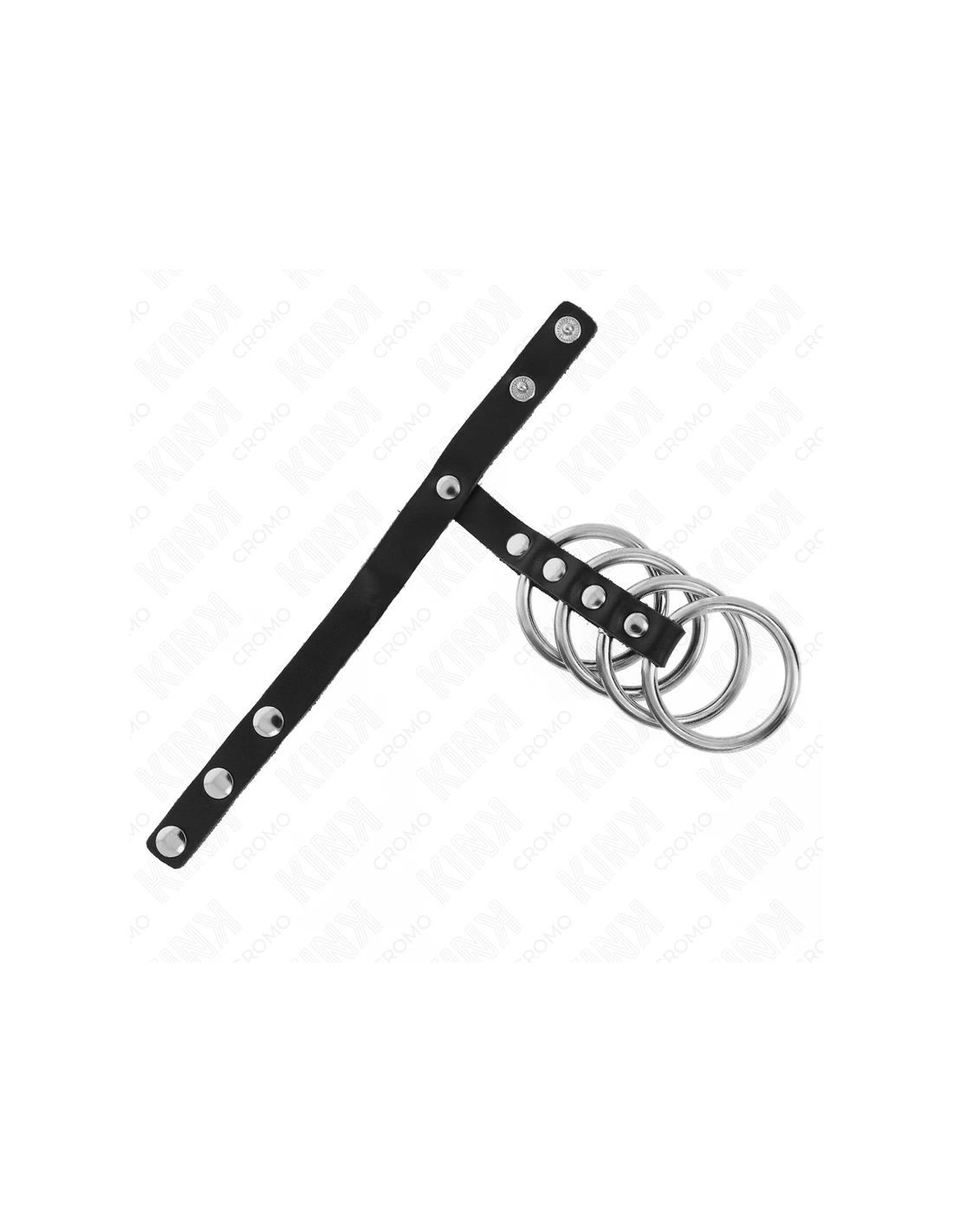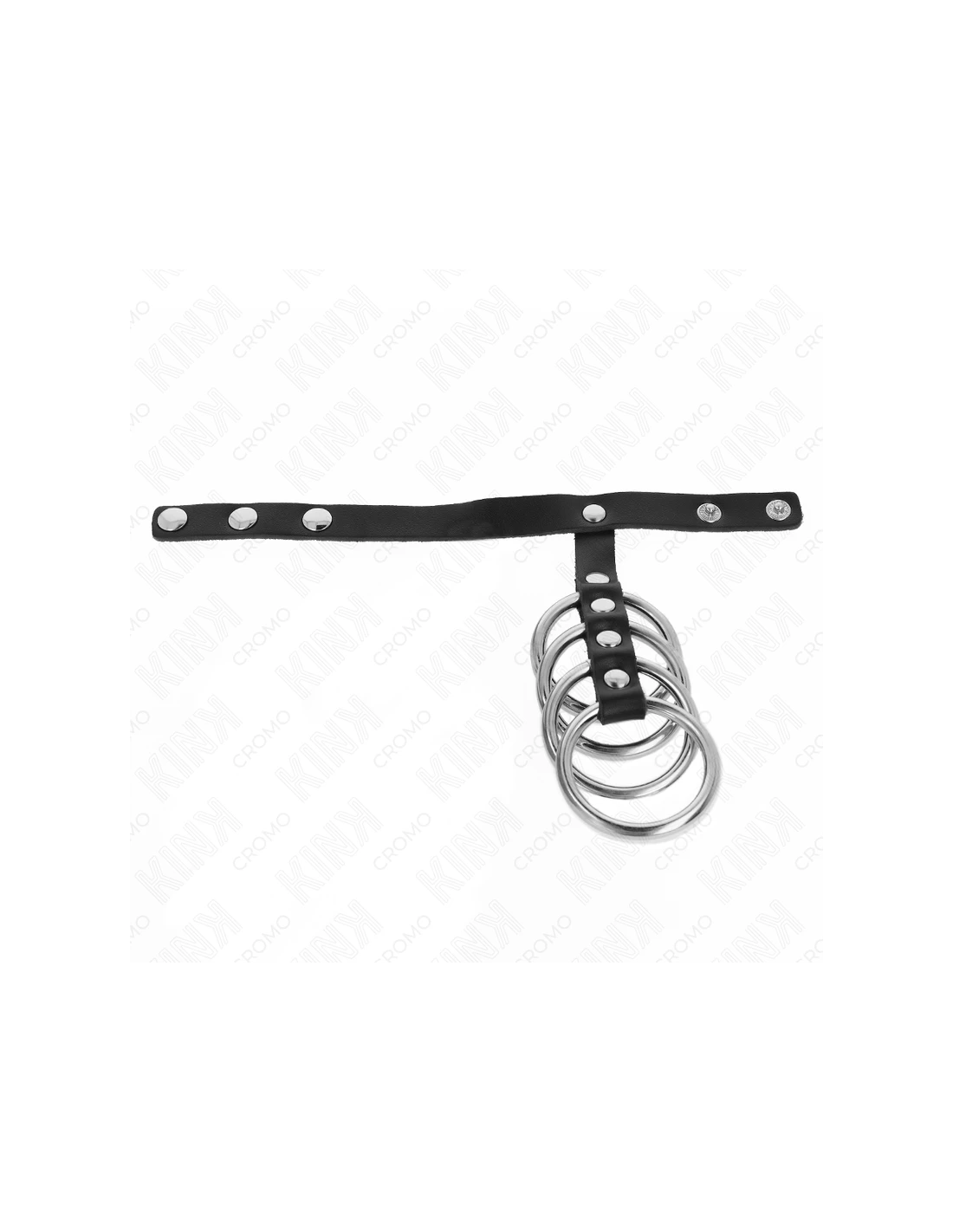 KINK - 4 ANILLOS PENE METAL 3.8 CM CONECTADOS CON CORREA DE CUERO 22 X 1.5 CM Y CIERRE A PRESIÓN