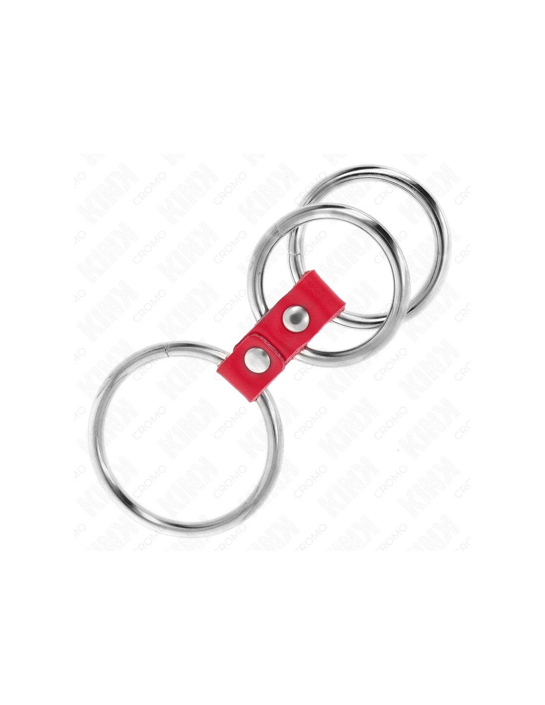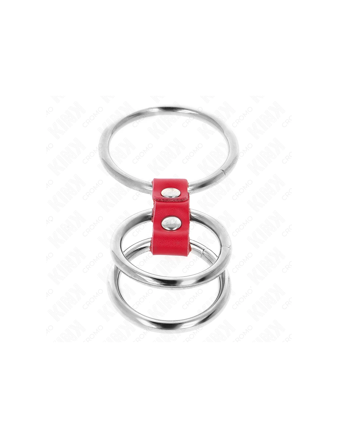 KINK - ANILLO PENE TRIPLE METAL 3.7 CM A 5 CM CONECTADOS CON CUERO ROJO