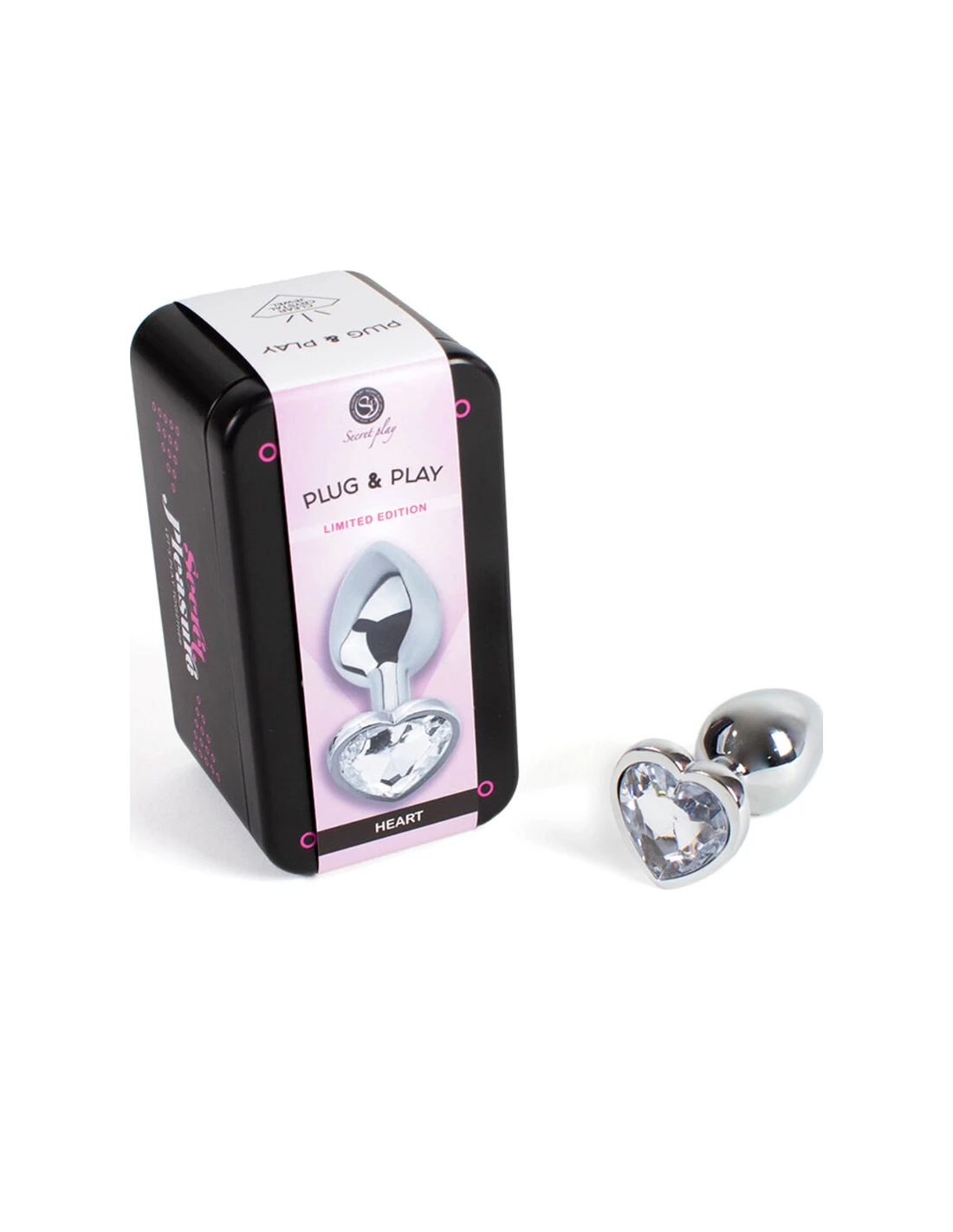 SECRETPLAY - METAL BUTT PLUG CORAZÓN TRANSPARENTE TALLA S 7 CM