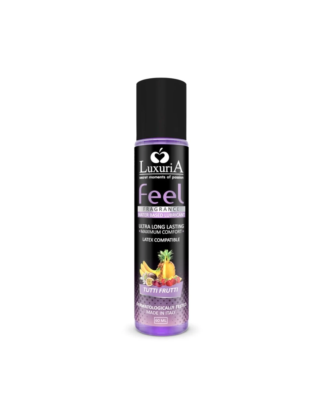 Luxuria Feel Fragrance tutti frutti es un lubricante íntimo a base de agua aromatico específico para la hidratación y la lubricación vaginal o anal antes del coito íntimo.