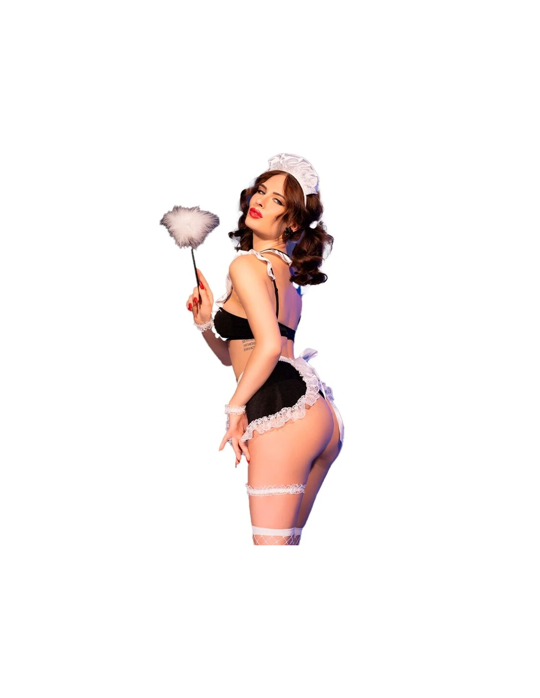 ¡Es hora de limpiar… pero de una manera completamente diferente! Con este atrevido disfraz de mucama, no solo pondrás todo en orden, ¡también desatarás un poco de caos!