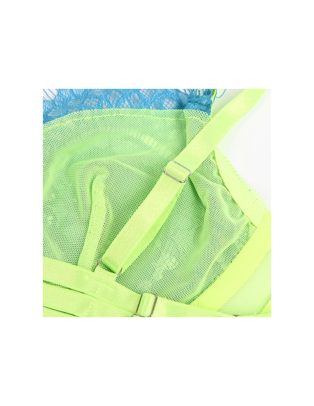 SUBBLIME - 955311 SET SUJETADOR CON ENCAJE Y LIGUEROS VERDE Y AZUL S/M