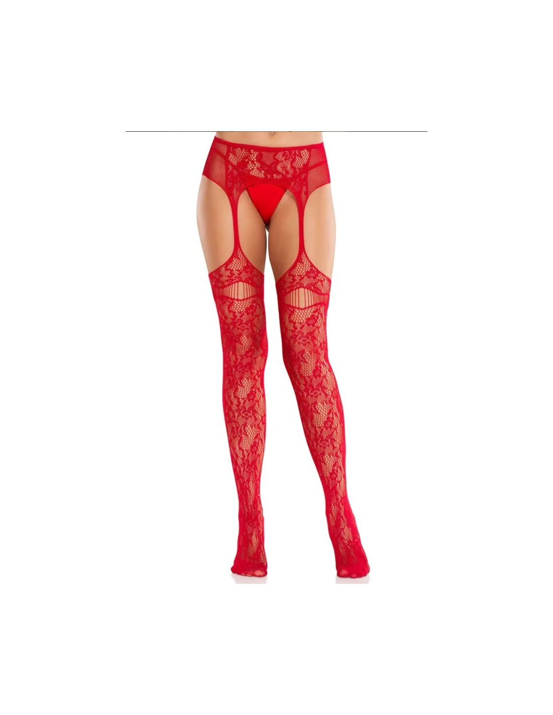LEG AVENUE - MEDIAS DE ENCAJE CON LIGAS ROJO