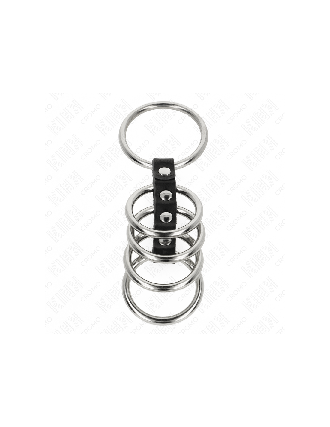 KINK - 5 ANILLOS PENE 3.7 CM A 5 CM METAL CONECTADOS POR CUERO