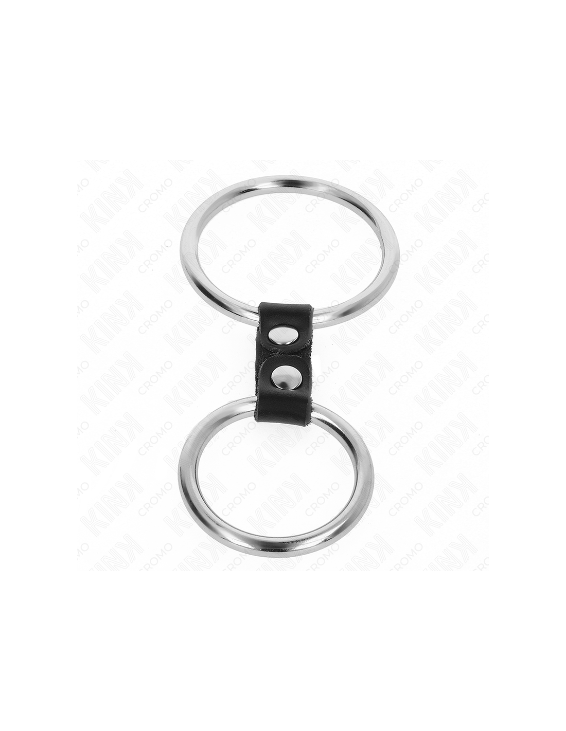 KINK - ANILLO PENE DOBLE METAL 3.7 CM A 5 CM CONECTADOS POR CORREA POLIPIEL MODELO 2