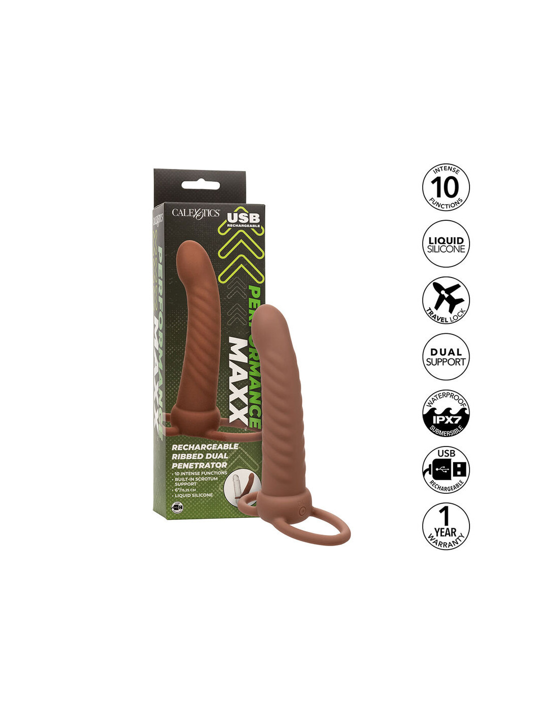 CALEXOTICS - MAXX DOBLE PENETRADOR ACANALADO 10 VIBRACIONES MULATO