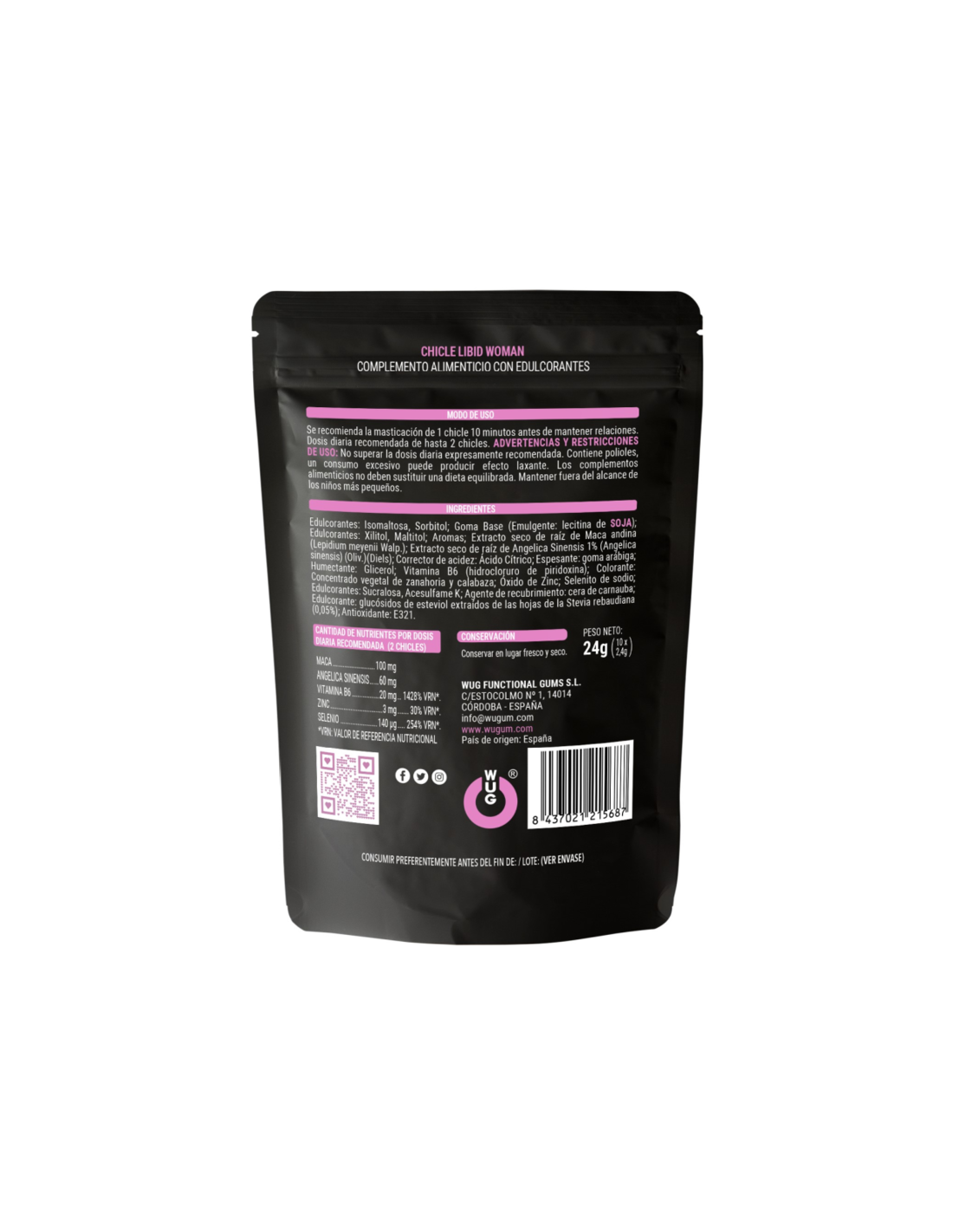 Chicle LIBID WOMAN – Chicle funcional con Maca, Ginseng Femenino y Zinc para potenciar la vitalidad femenina