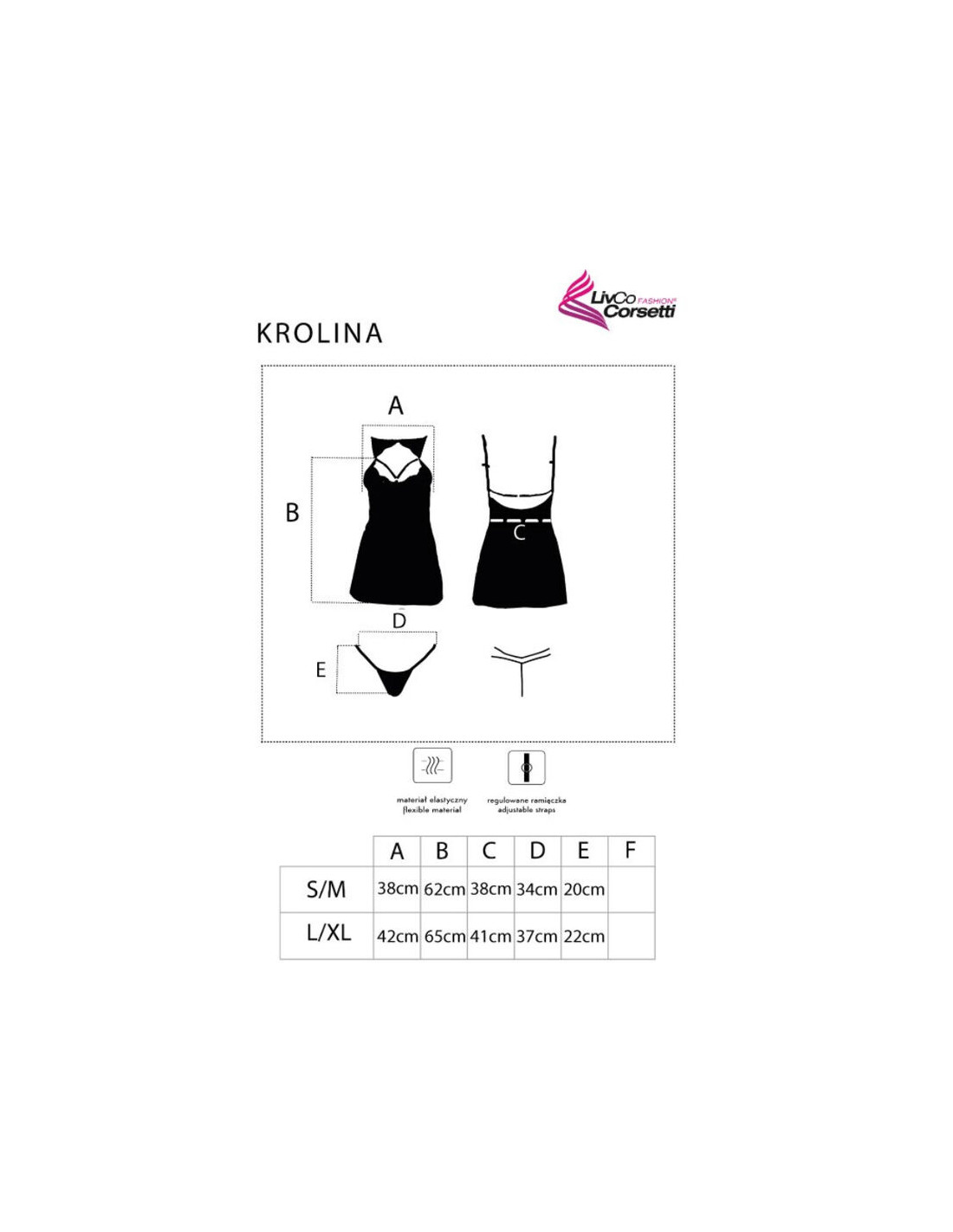 LIVCO CORSETTI FASHION - KROLINA LC 90734 CHEMISE + TANGA NEGRO S/M