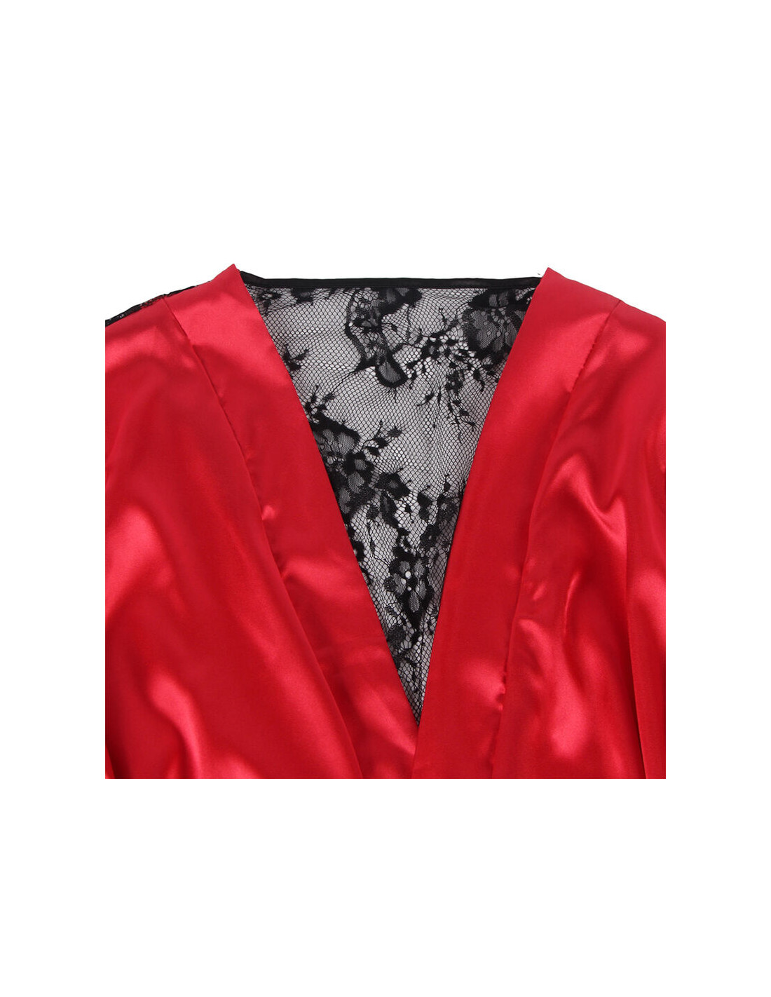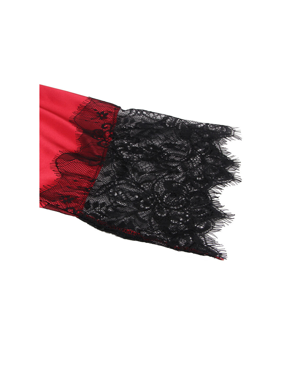 SUBBLIME - 954024 CAMISON DE ENCAJE ESPALDA TRANSPARENTE + TANGA ROJO/NEGRO L/XL
