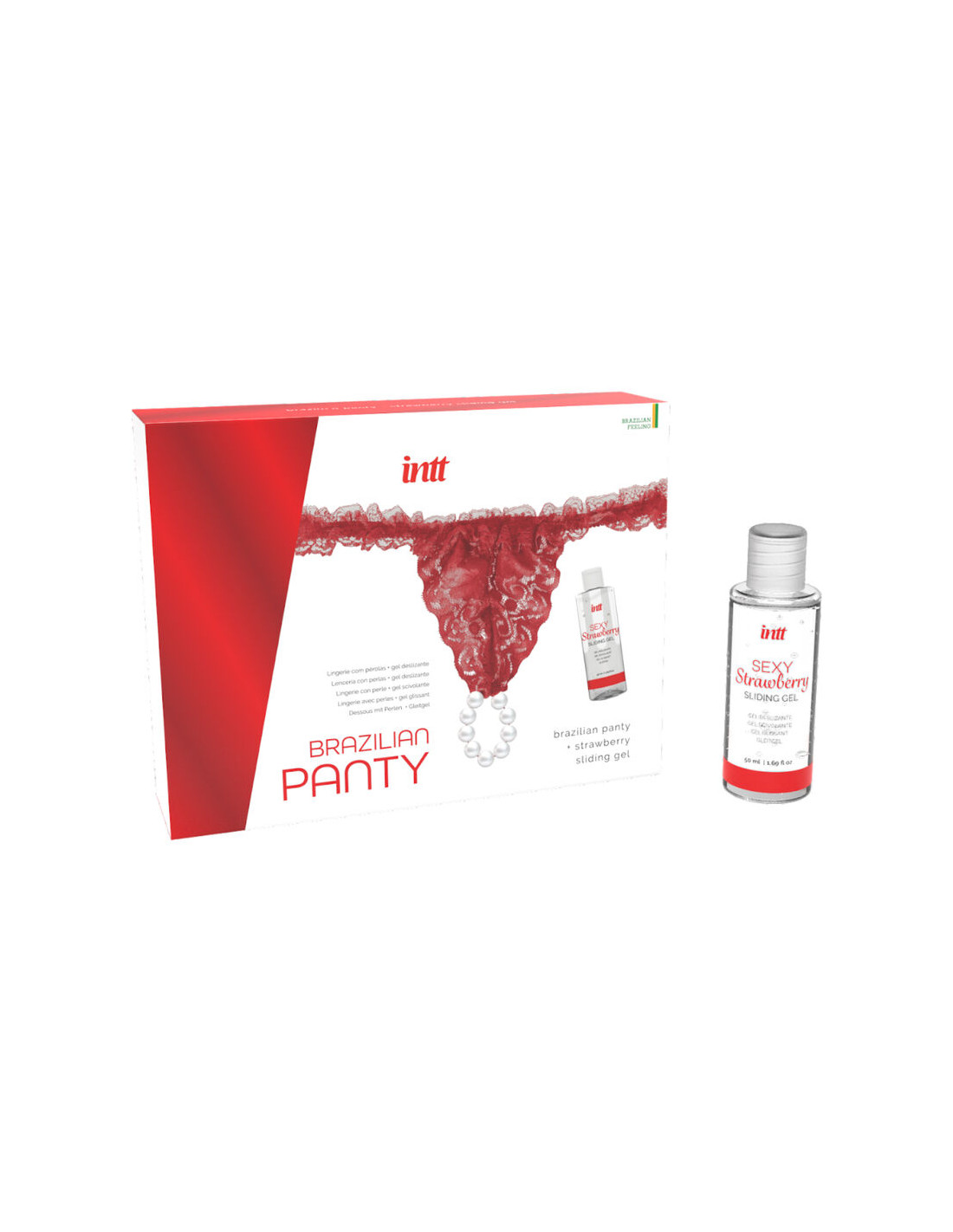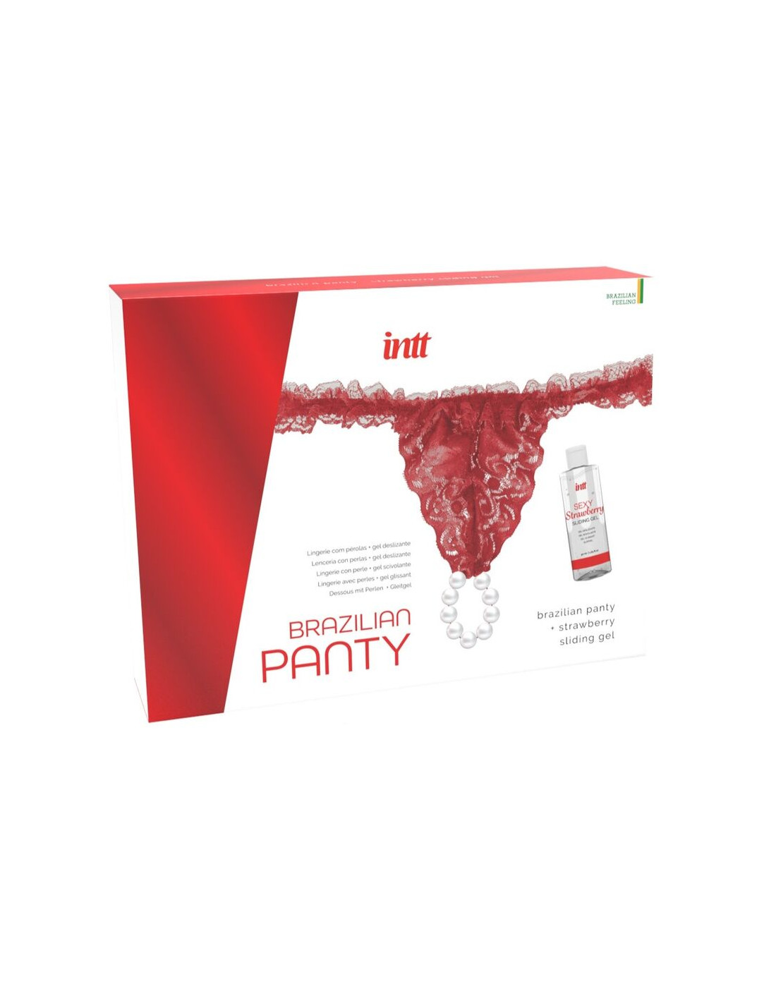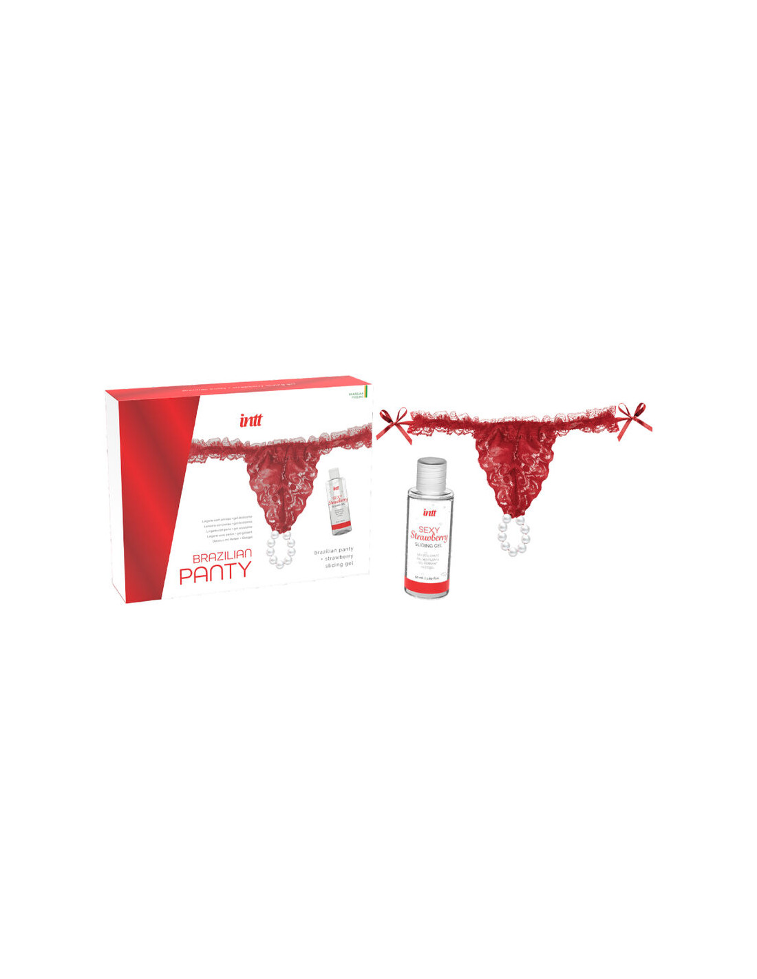 INTT RELEASES - PANTY BRASILEÑO ROJA CON PERLAS Y GEL LUBRICANTE 50 ML