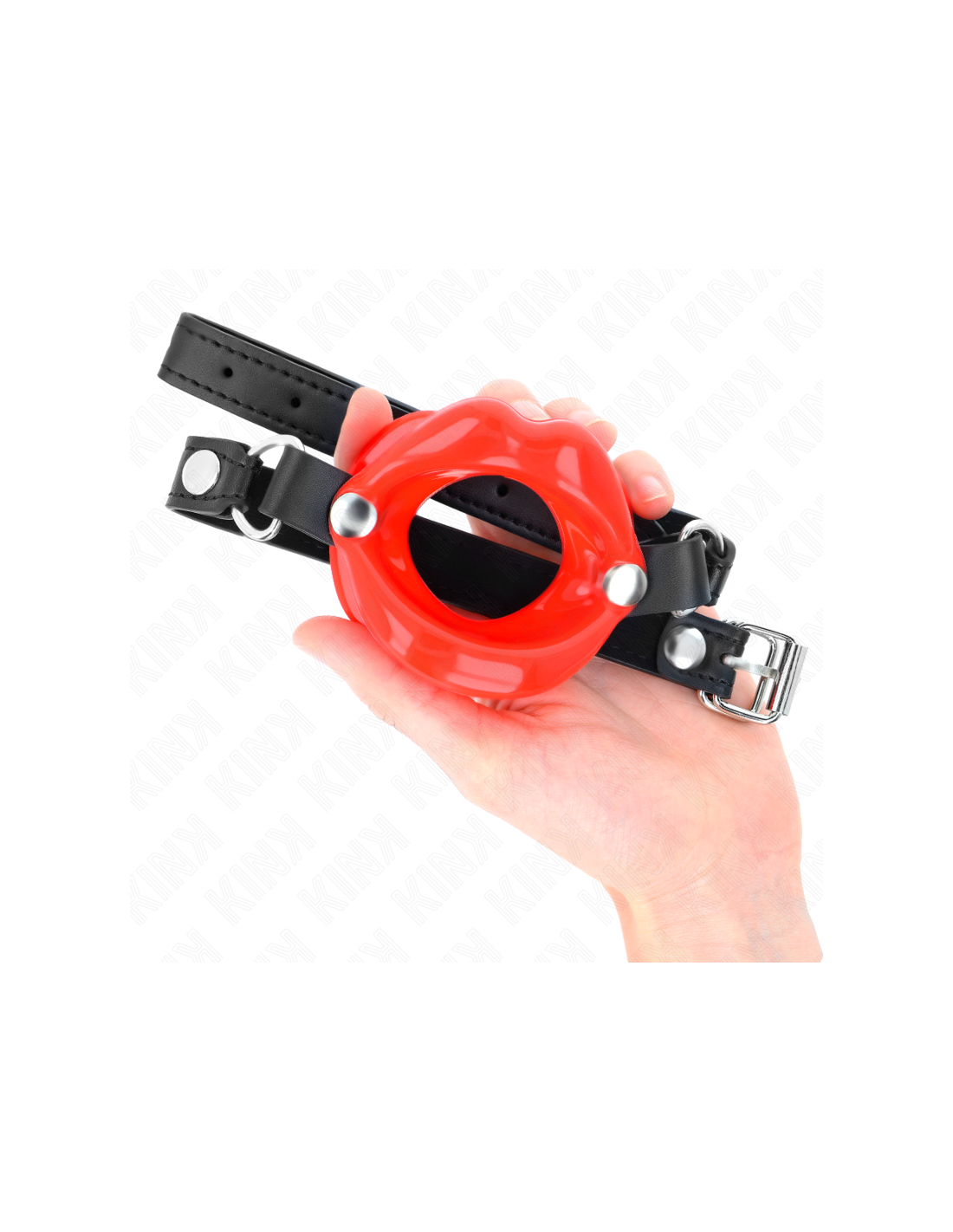 KINK - MORDAZA LABIAL 8 CM CON CORREA DE POLIPIEL ROJO 63 x 2 CM AJUSTABLE 39-58 CM