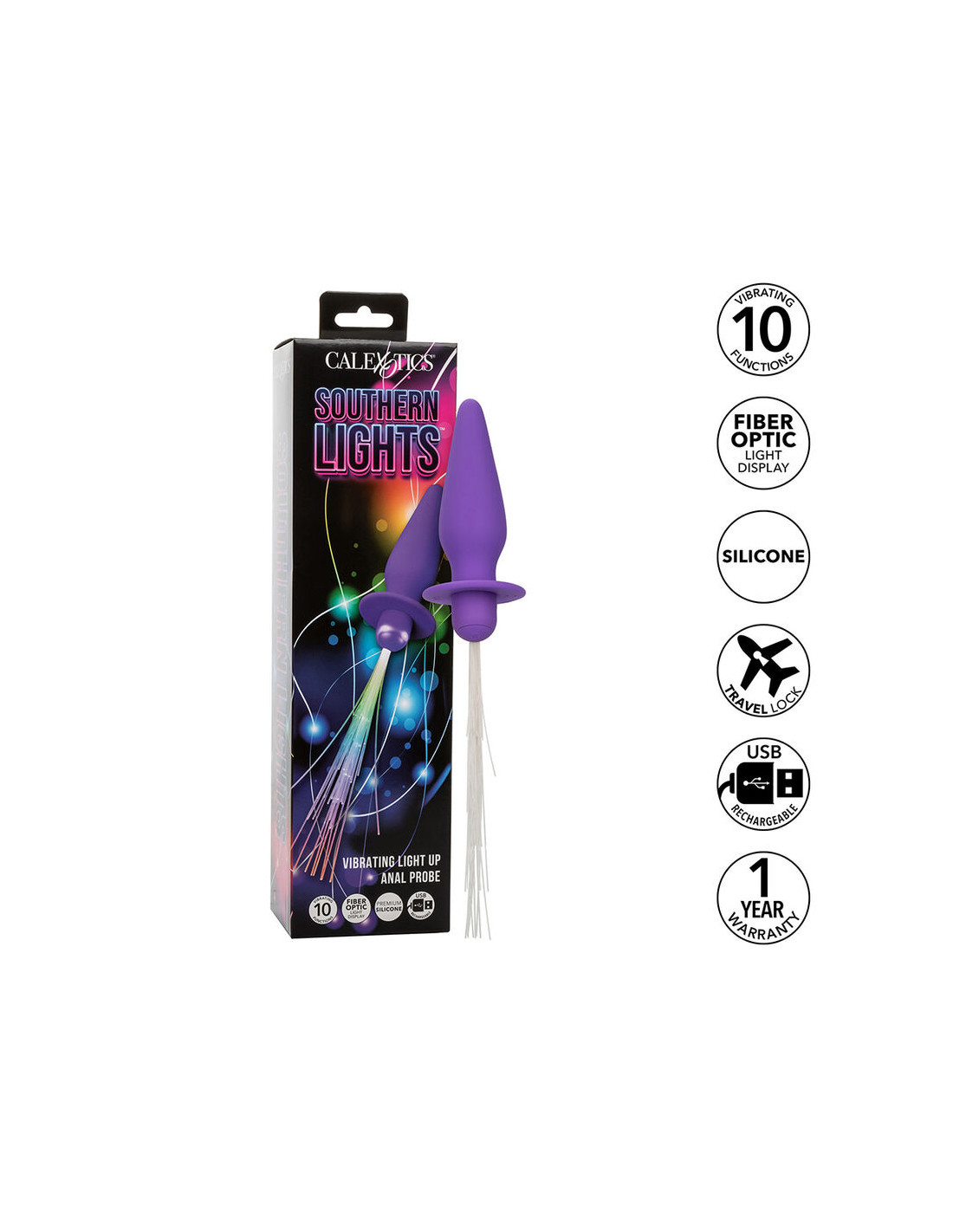 CALEXOTICS - SOUTHERN LIGHTS LIGHT UP PLUG ANAL CON LUCES 10 VIBRACIONES SILICONA VIOLETA