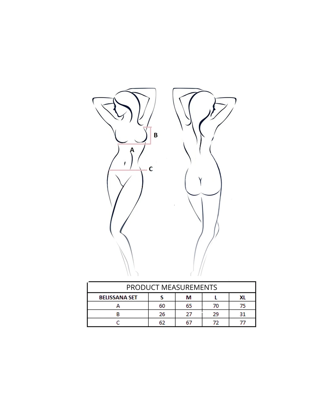 El conjunto BELISSANA combina sensualidad y elegancia moderna, diseñado para mujeres que aprecian la belleza sutil y el lujo en cada detalle. Elaborado íntegramente en delicada poliamida transparente, cautiva con su ligereza y delicadeza, a la vez que realza la belleza natural del cuerpo.