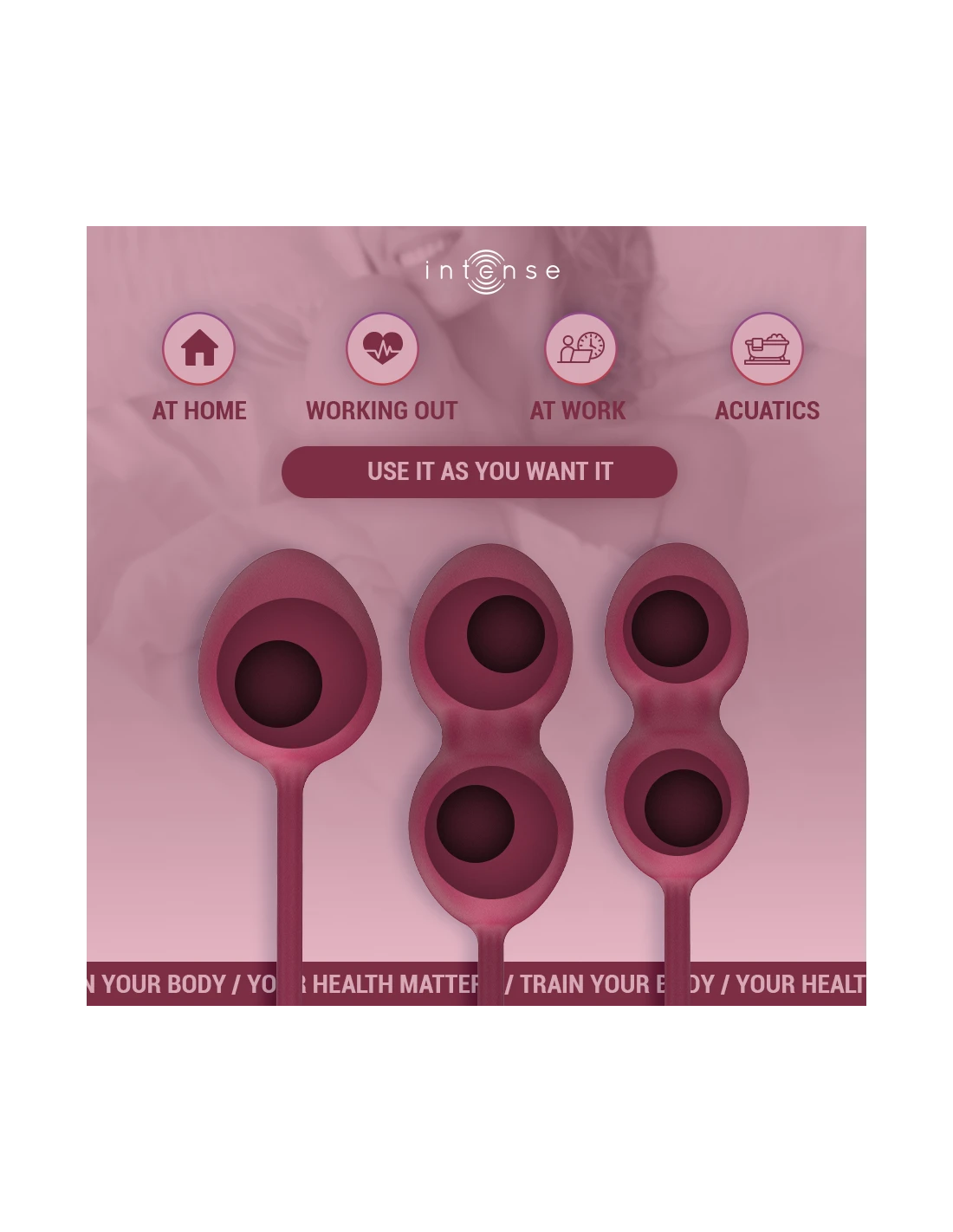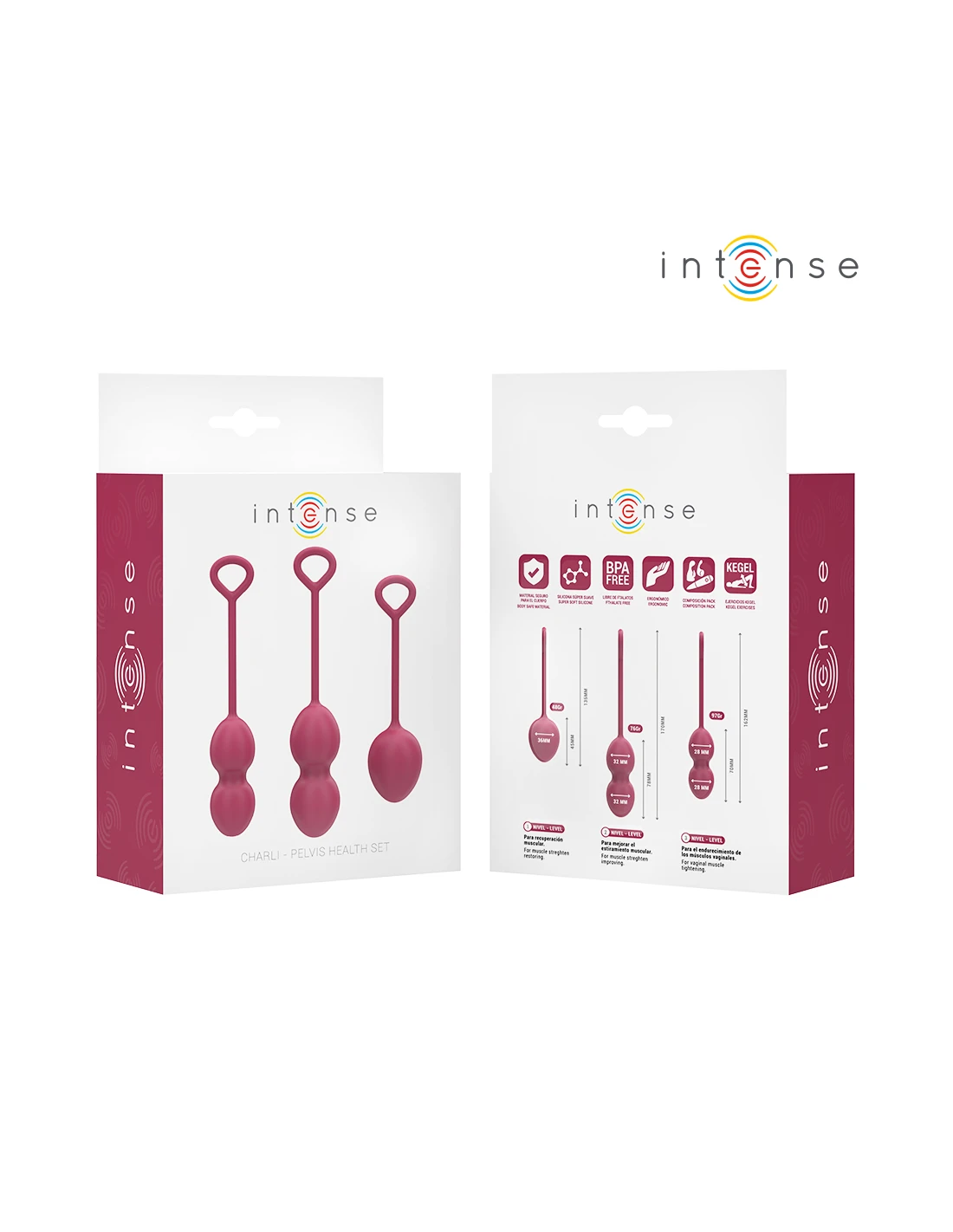 - Pack completo de 3 bolas Kegel: cada una con un peso y tamaño diferente para avanzar progresivamente.