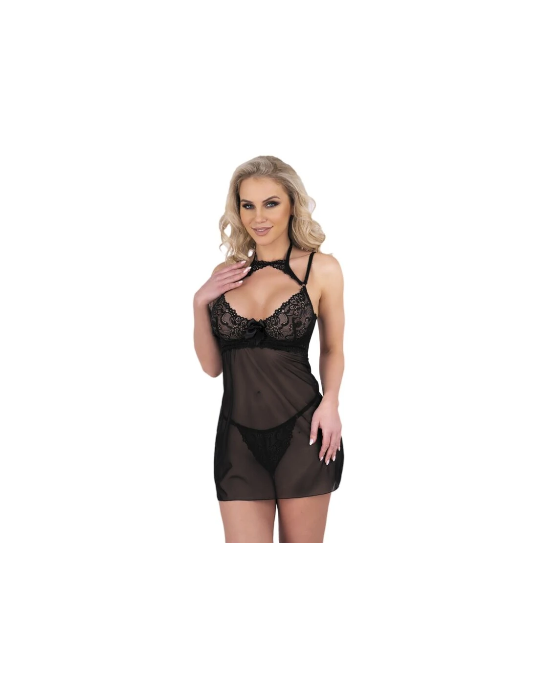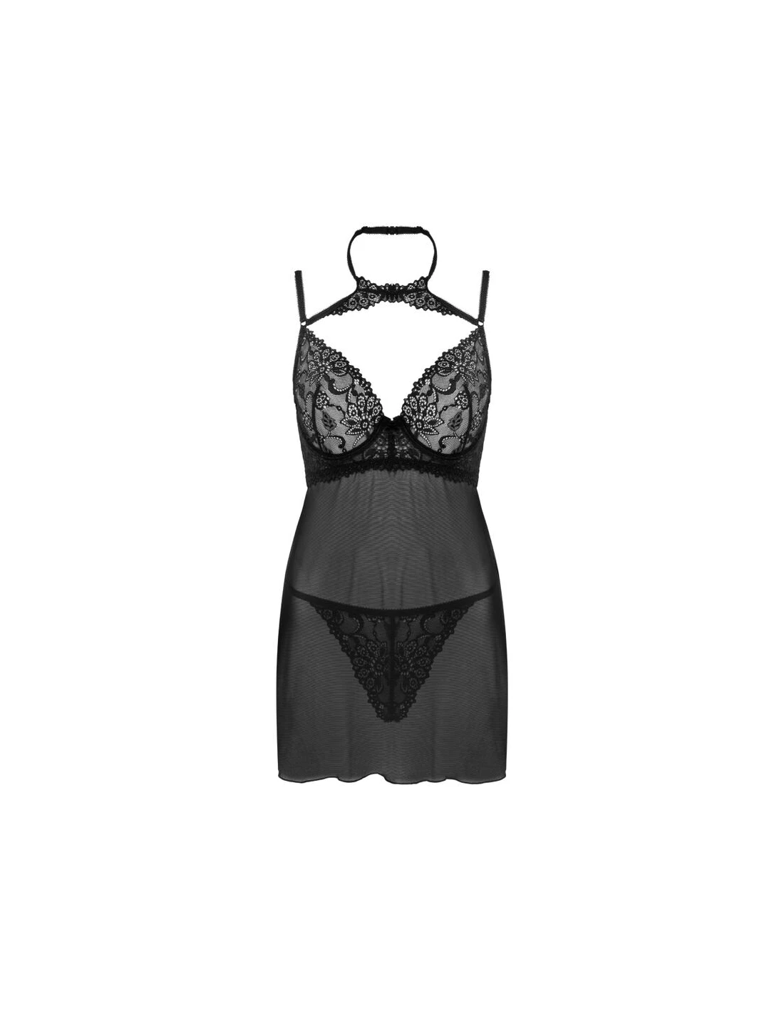 LIVCO CORSETTI FASHION - BINELLA SET BABYDOLL + TANGA NEGRO