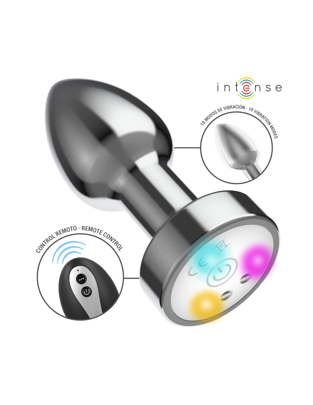 INTENSE - PLUG ANAL DE METAL VIBRADOR CON LUCES LED Y CONTROL REMOTO - TALLA S