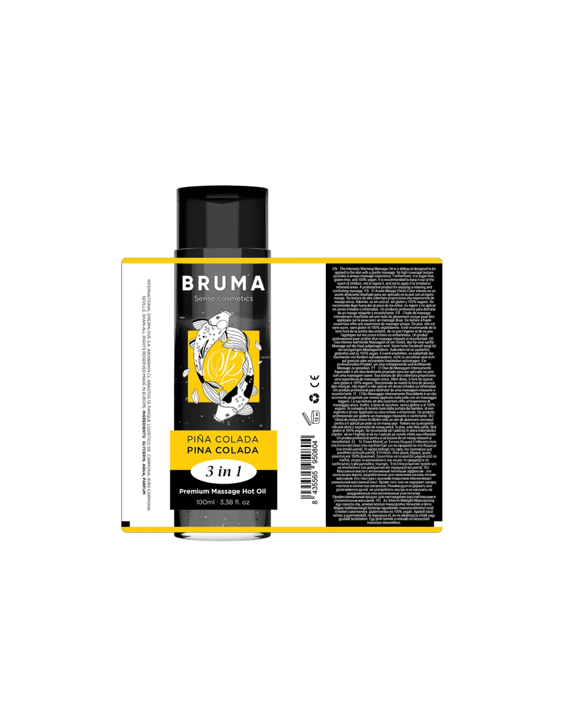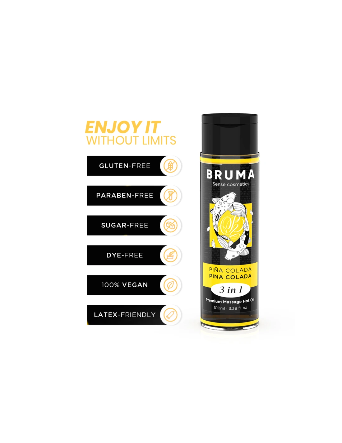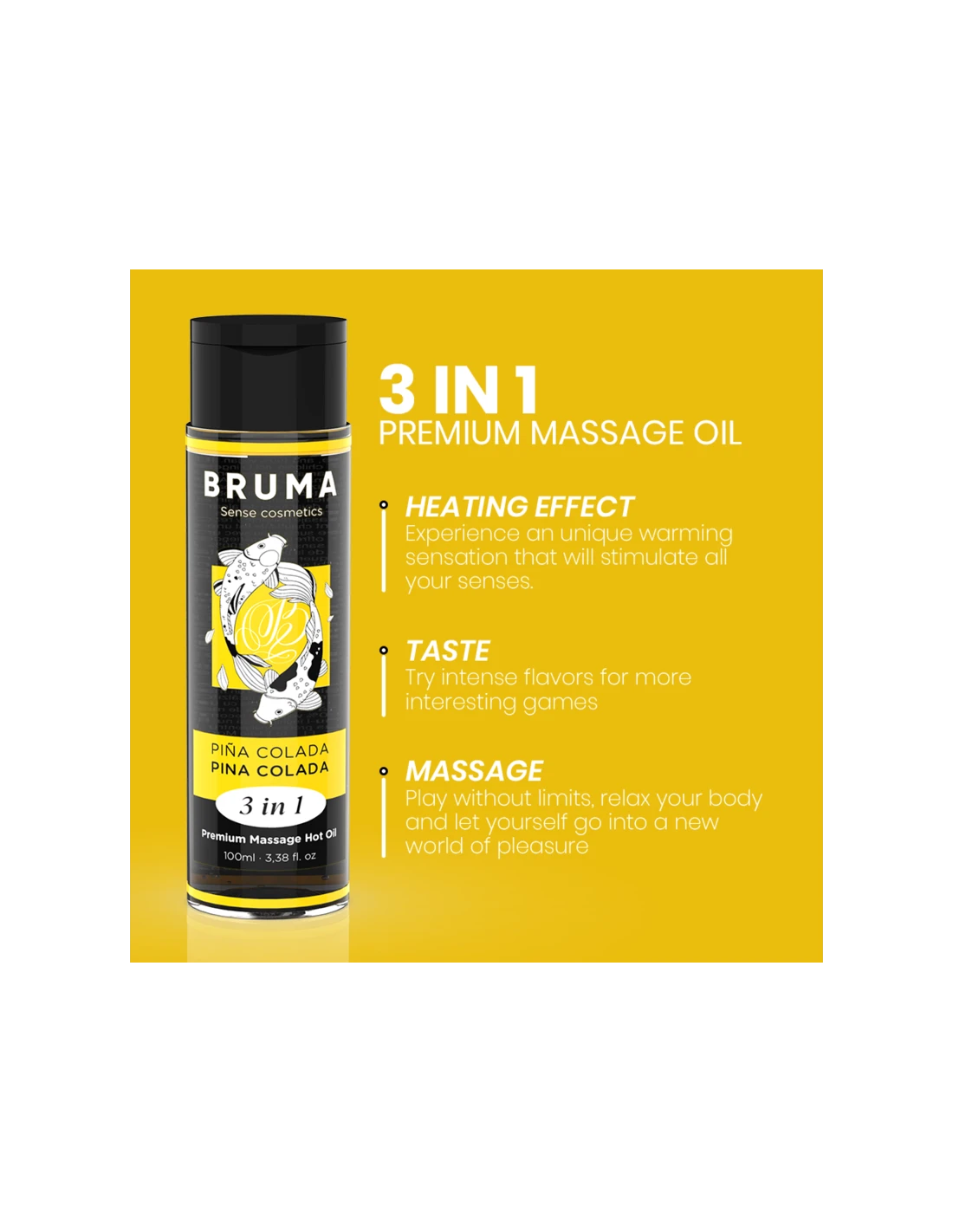 BRUMA - ACEITE DE MASAJE PREMIUM EFECTO CALOR SABOR PIÑA COLADA 3 EN 1 - 100 ML