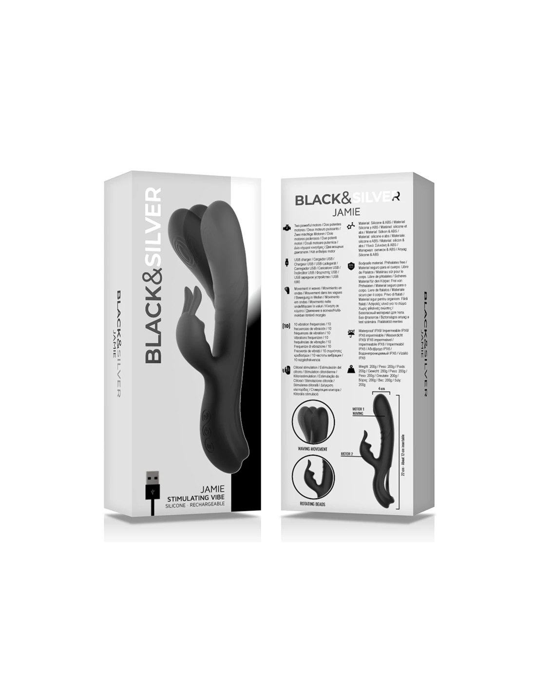 BLACK&SILVER - JAMIE VIBRADOR RABBIT EFECTO WAVE