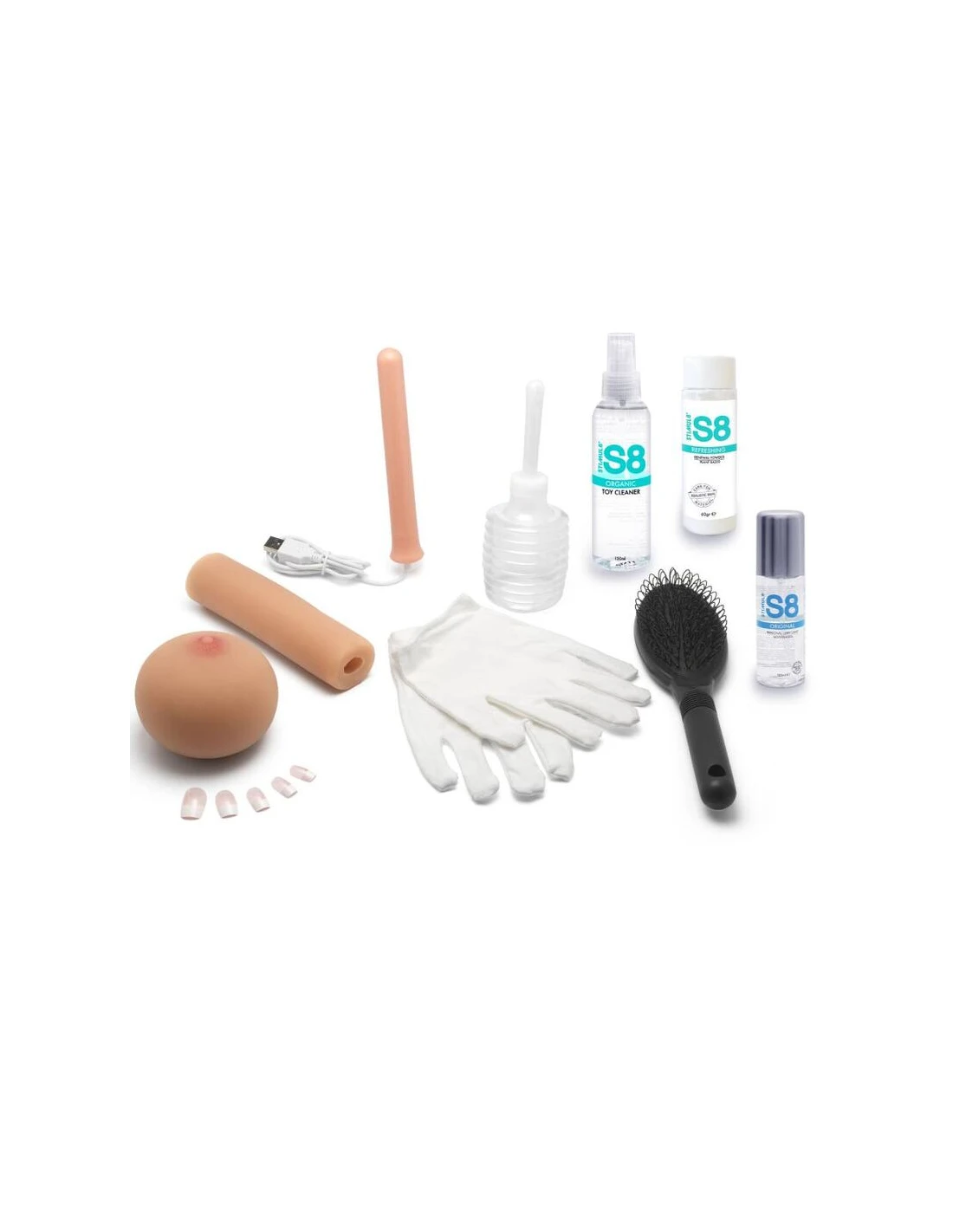 ¡Esta muñeca de lujo viene con una amplia gama de accesorios para que tu dama luzca y se sienta lo mejor posible en todo momento! En el paquete se incluyen dos conjuntos de lencería traviesa, limpiador de juguetes S8 Quality, lubricante S8 Silky, polvo S8 Renewal, guantes de algodón blanco para mover/manipular la muñeca, un juego de uñas de repuesto, una varita calefactora USB, un irrigador limpiador, un cepillo para el cabello y extensas instrucciones de cuidado. ¡Si quieres el trato real, este Bangers Babe es tu pareja perfecta y placentera! Tenga en cuenta que, debido a su tamaño y peso, este artículo no viene en un embalaje de producto convencional y, en cambio, se enviará en una caja de cartón discreta.