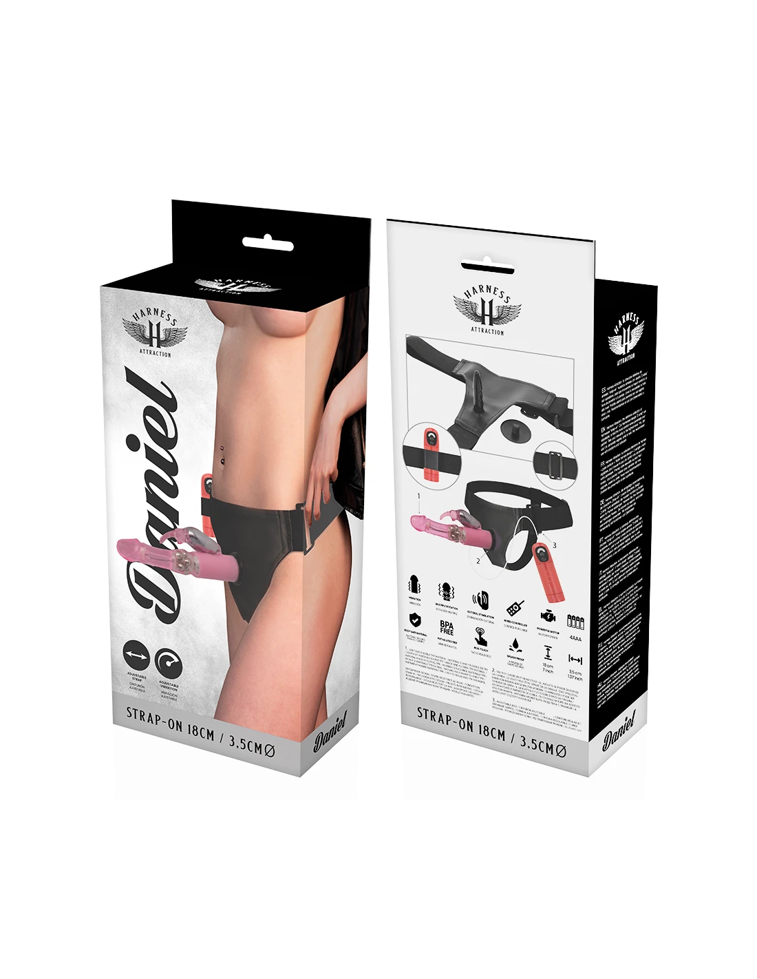 HARNESS ATTRACTION - ARNÉS DANIEL CON VIBRACIÓN Y ROTACIÓN 18 CM -O- 3.5 CM