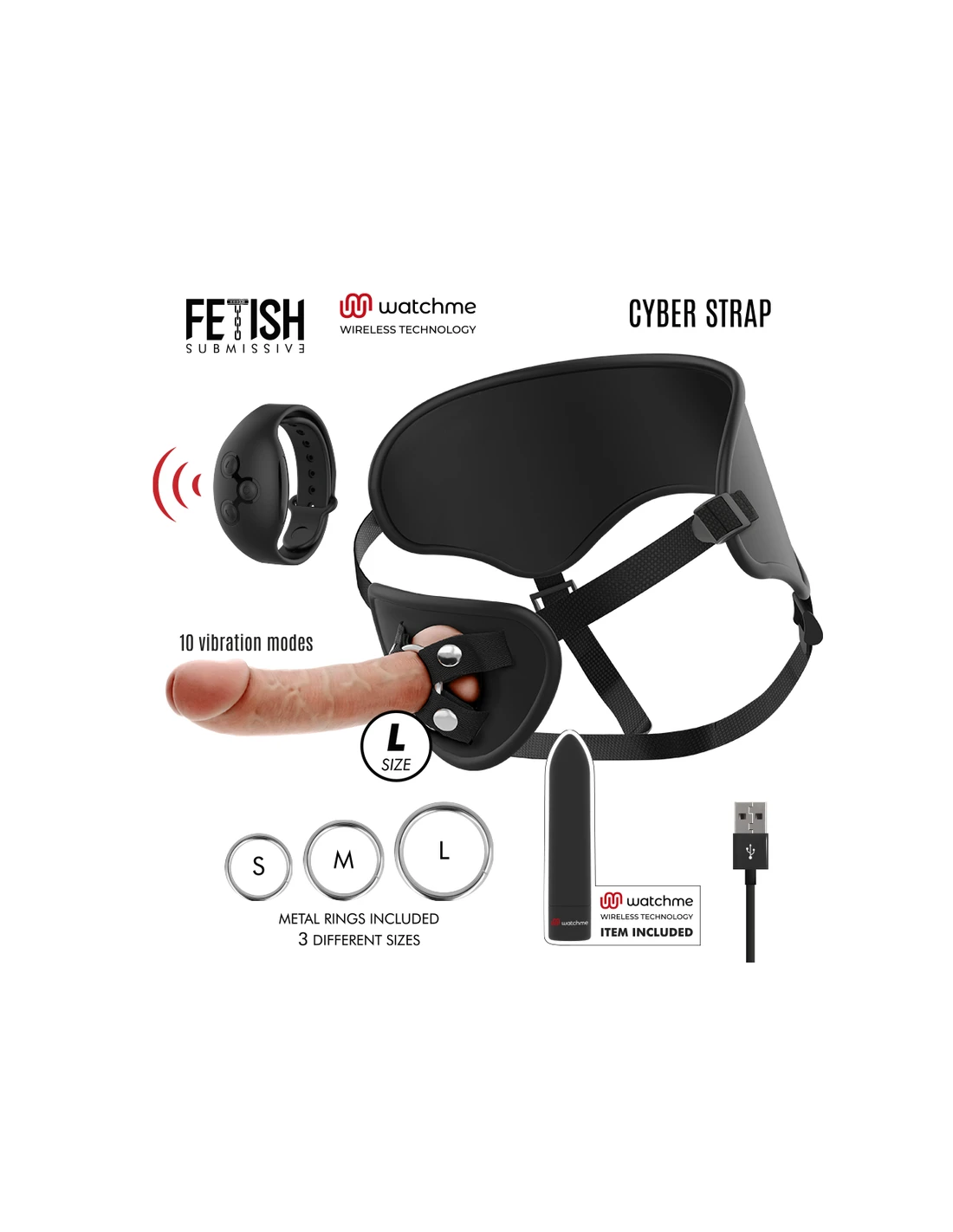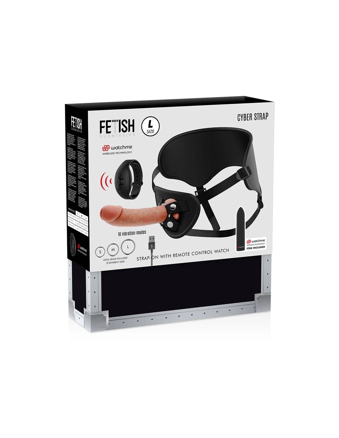 ppCuando quieres que tu primer arnes se vea y se sienta como si fuera real el arnes con correa completamente ajustable de Fetish Submissive en la gama strongCyberstrap stronges justo lo que has estado buscando ppCada vena cada eje y cada cabezal estan cuidadosamente hechos a mano con exquisitos detalles para brindarte la experiencia mas realista jamas imaginada ppCyberstrap incluye un dildo de silicona placentero y realista disenado para alcanzar todos tus puntos intimos ppEste pene realistico premium es de un color de tono natural y tiene una silueta con una base de ventosa ofreciendole una experiencia realista y emocionante ppEl diseno presenta detalles cuidadosamente disenados para mejorar su atractivo natural mientras que su material de doble densidad ofrece el doble de diversion intima ppSu exterior suave al tacto y su nucleo solido forman una combinacion irresistible que te dejara boquiabierto con su sensacion sensacional ppGrandiosas son tambien sus cualidades Con su tacto sedoso y su placentera superficie de 100 silicona Estimula en todas las situaciones en la cama en la banera o utilizandolo con un arnes Ademas se puede usar sin manos colocando su pie de forma ergonomica sobre una superficie llana Se quedara asi tanto tiempo se requiera y se retirara con total facilidad ppFabricado en silicona liquida y empaquetado de una manera cuidadosamente revisada el liquid silicone que incluye CYBERSTRAP es imprescindible para todos los amantes de la diversion realista ppEl material Liquid Silicone 100 Silicona hipoalergenico de CYBERTRASP destaca por su sedosa superficie mate con una extraordinaria adaptacion al cuerpo Acabado premium impermeable IPX7 pulliLas hebillas del cinturon aseguran que no se suelten durante la diversion mientras que las correas tienen un agarre optimo que sostiene todo en su lugarpCompletamente confortable y realista pero ademas incluye vibracion control remoto con la tecnologia WATCHME ppTodos los Juguetes CYBERSTRAP incluyen la tecnologia reloj WATCHME con el reloj incluido y listos para usar con el control remoto o sin el Pero es que es esta tecnologia ppEs un reloj inteligente sexual que te ayudara a controlar los juguetes sexuales pero ademas podemos sincronizarlos con los juguetes sexuales que utilicen la tecnologia watchme para controlar las vibraciones y las funciones de nuestro sextoy favorito ppustrongFunciones de un reloj WATCHME ppEn un reloj WATCHME existen algunas funciones destacadas que pasamos a detallar pulliActivar Desactivar la vibracion liliModificar los modos de vibracion liliModificar las intensidades en cada modo de vibracionpstrongEste modelo cyberstrap es mas avanzado incluye un vibrador control remoto que se acciona simultaneamente con el dildo proporcionando vibracion a ambas personas El vibrador se introduce dentro del propio arnes justo en la zona sensitiva vaginal pCada Cyberstrap no contiene ftalatos no contiene latex es seguro para el cuerpo e hipoalergenico y las anillas de metal estan libres de Niquel ppustrongCaracteristicas pulliLongitud total 225 cm liliLongitud insertable 205 cm liliDiametro del producto 48 cm liliResistente al agua liliMateriales Cuero sintetico Vinilo Metal Velcro Silicona liquida liliControl remoto con tecnologia WATCHME Reloj liliMuy confortablepCada Cyberstrap se limpian con facilidad y se conservan higienicos durante mucho tiempo El flexible material se desliza de maravilla y adopta rapidamente la temperatura del cuerpo El dildo de Cyberstrap se limpia rapida y facilmente con un poco de jabon y agua templada Para una higiene minuciosa rocialo despues con limpiador desinfectante para juguetes sexuales preferentemente con waterfeel toycleaner especificamente concebido para ello