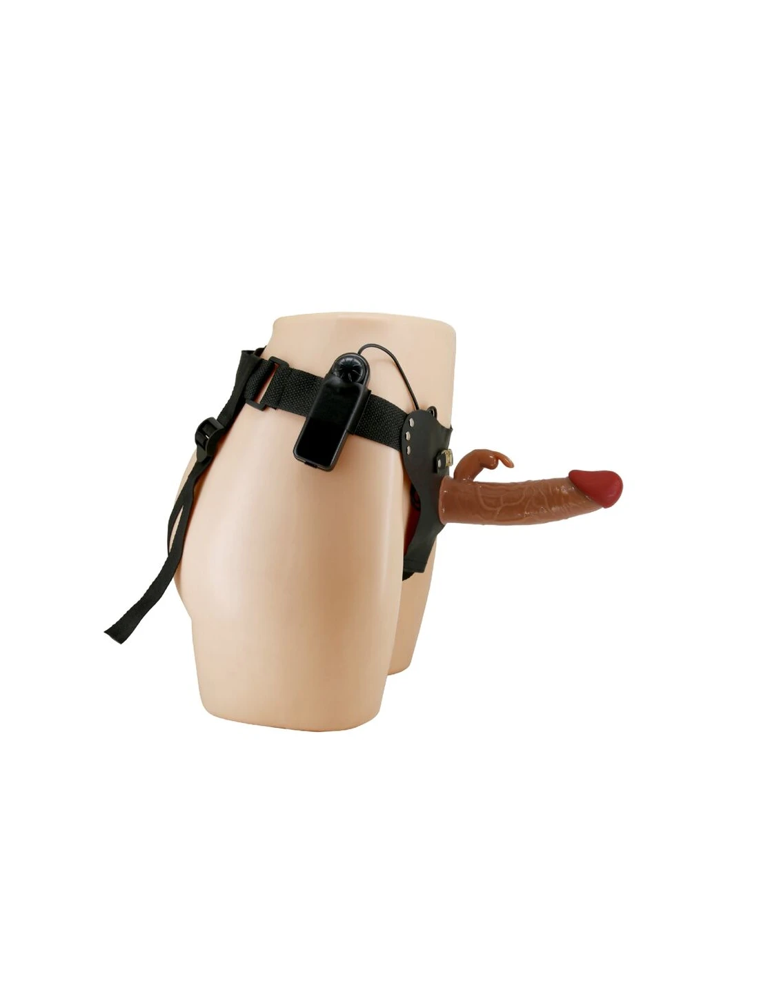 ¡Toma el control y satisface a tu pareja en la cama con el consolador de conejo vibrador con arnés y correa de PRETTYLOVE!