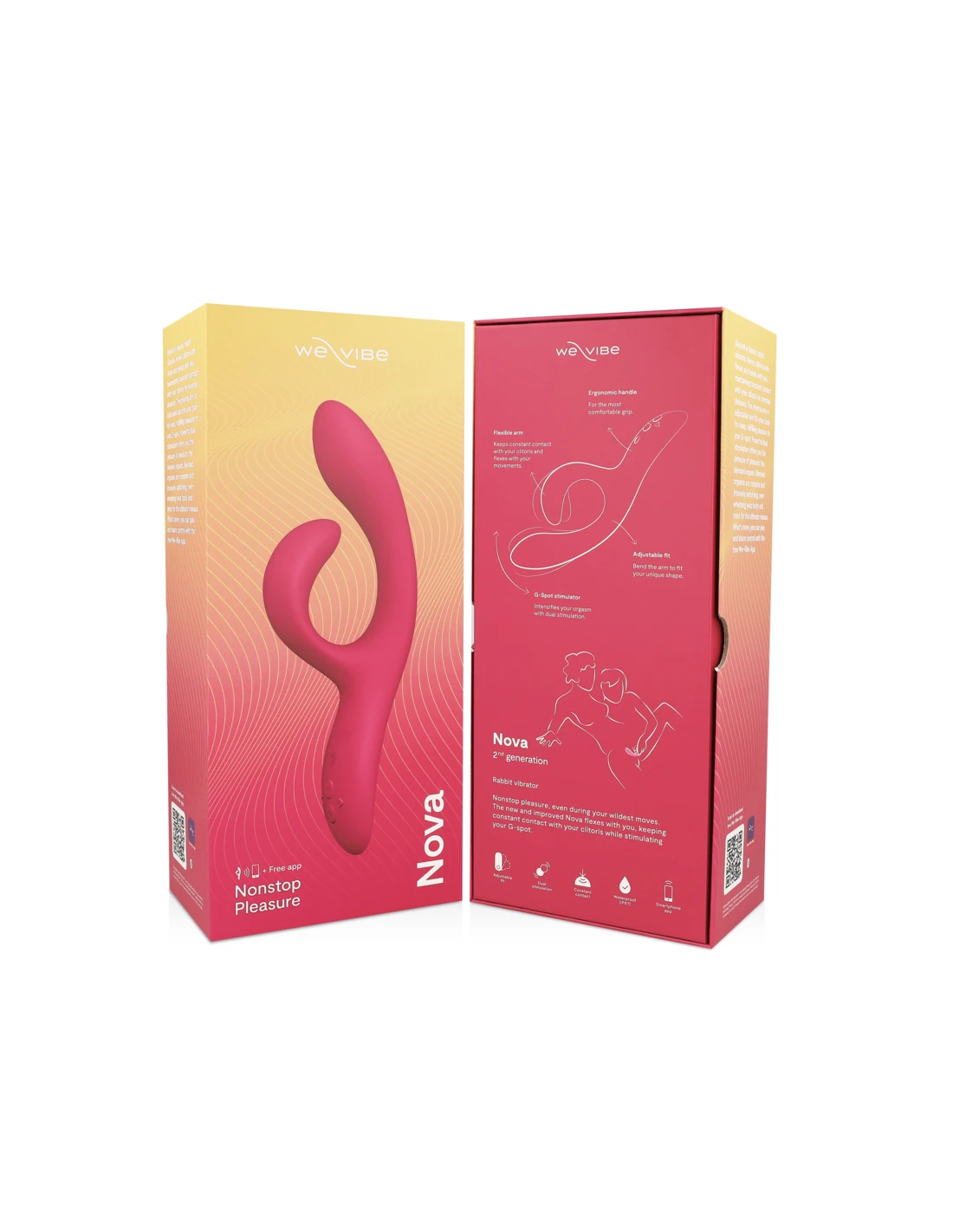 Estimulación doble potente como nunca antes. Controla el placer para tu punto G y deja que el exclusivo y flexible estimulador clitoriano de Nova se mantenga en contacto con tu clítoris. Nova by We-Vibe™ combina la plenitud con una auténtica estimulación simultánea del punto G y el clítoris.