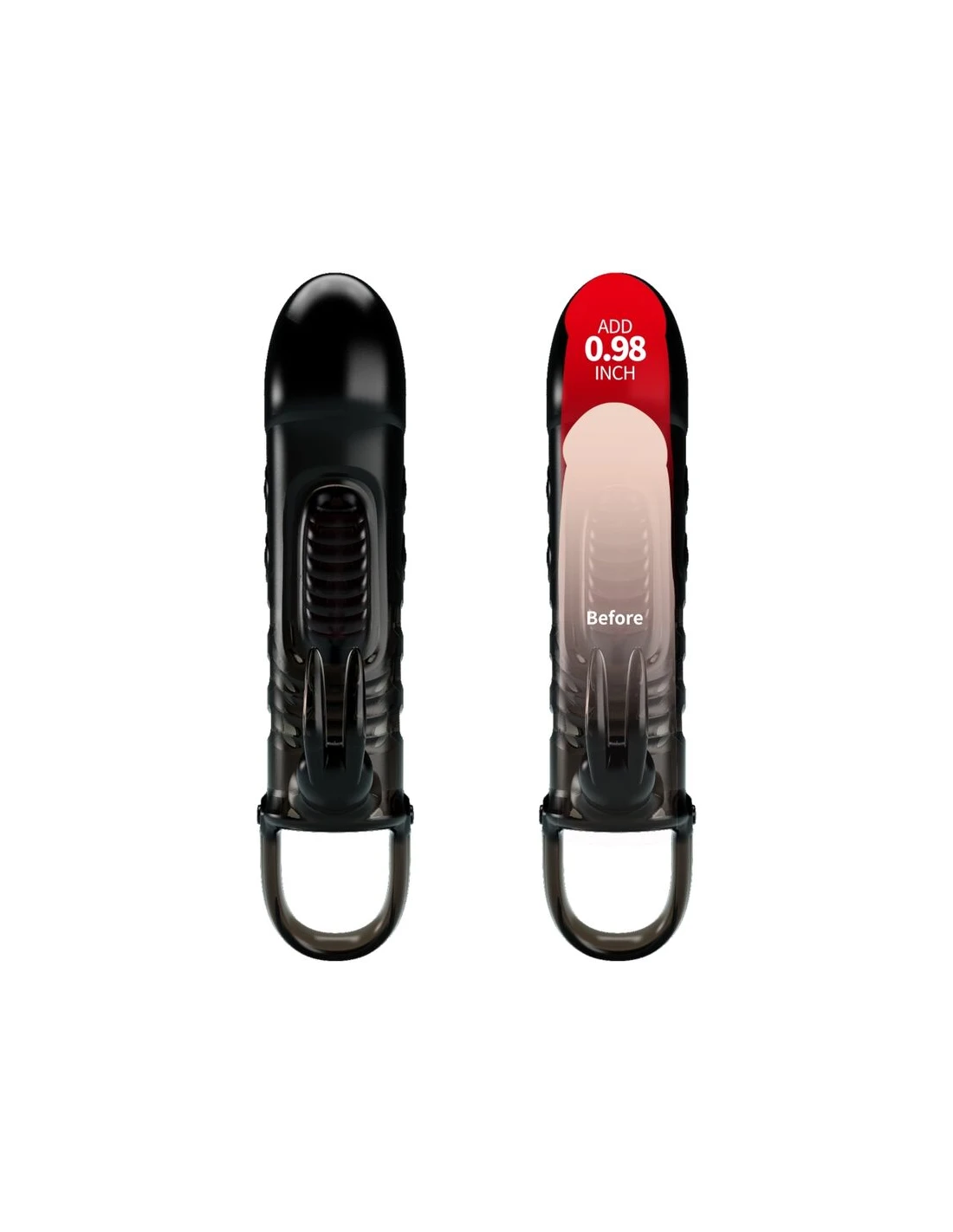 Diviértete en serio y sexy con esta funda vibradora para pene de conejo. Esta funda para pene que mejora la erección y promete placer está hecha de TPR suave y está asegurada en su lugar por un lazo de bola. Un vibrador en la punta extiende la longitud de su pene y se activa al contacto. Estimulando la cabeza de su eje, también proporciona estimulación interna para ella. Llévala a la felicidad climática encendiendo el conejo para enviar vibraciones directamente a su clítoris. La funda elástica envuelve su pene para una erección más fuerte y duradera, ¡lo que le da más tiempo para disfrutar de las vibraciones!