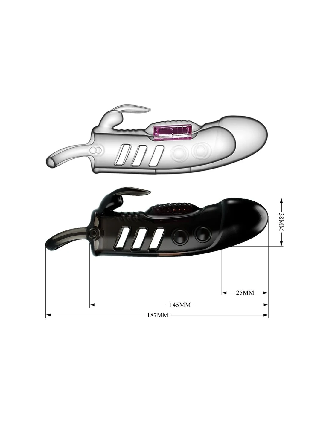 - Funcionamiento: funda de pene con vibración