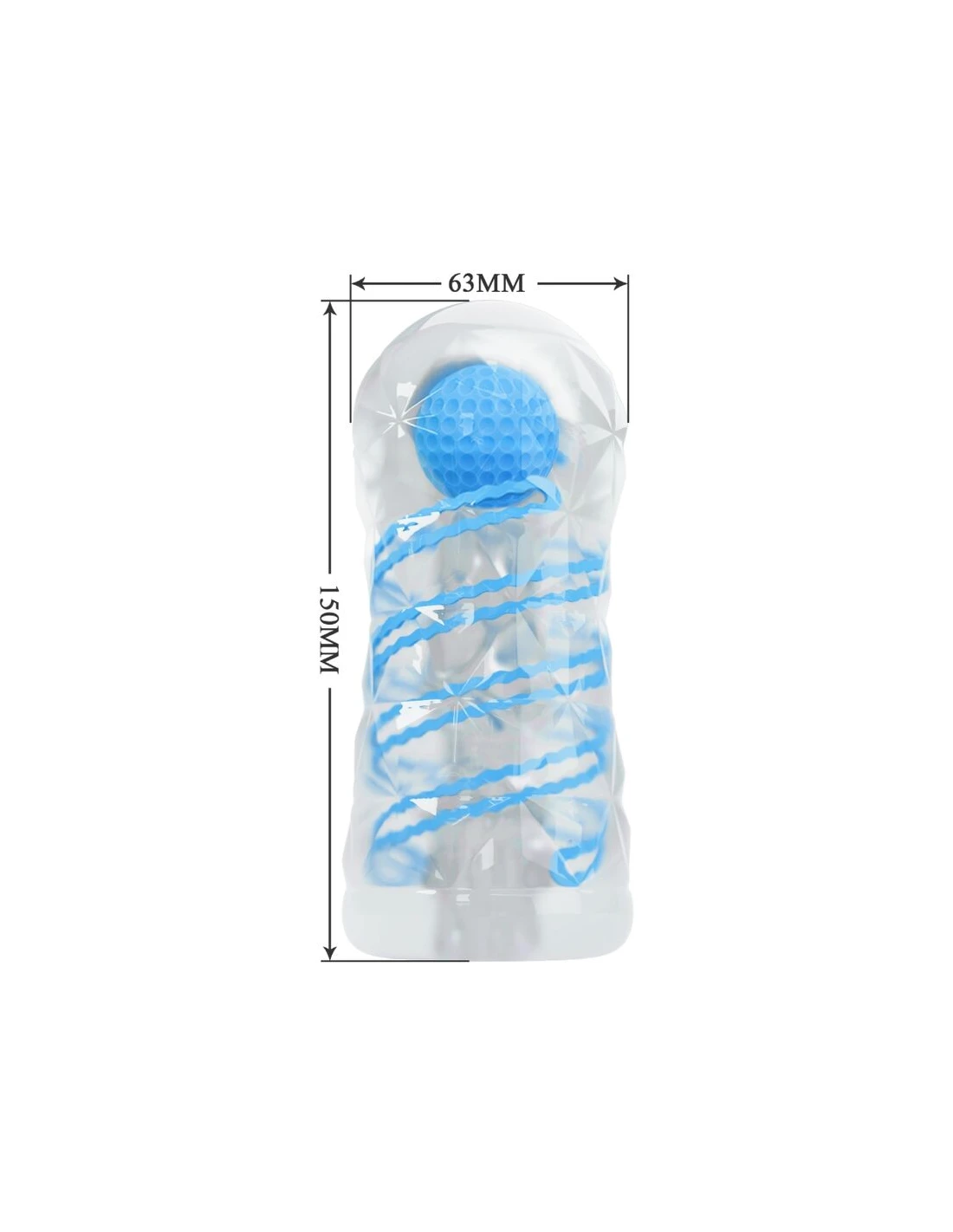 ¡Pequeña herramienta para una gigantesca diversión de masturbación! Este masturbador transparente y reutilizable tiene una espiral giratoria y una bola de estimulación en el costado, la espiral giratoria hace que el masturbador gire durante la penetración y la bola en la parte superior puede estimular el punto correcto y brindarle una nueva sensación. La funda presenta una textura estimulante y excitante en su interior que masajea el pene de forma intensa y dinámica durante un trabajo manual. Puede utilizar este elegante masturbador agradable para la piel una y otra vez. ¡Muy fácil de usar y puro placer!